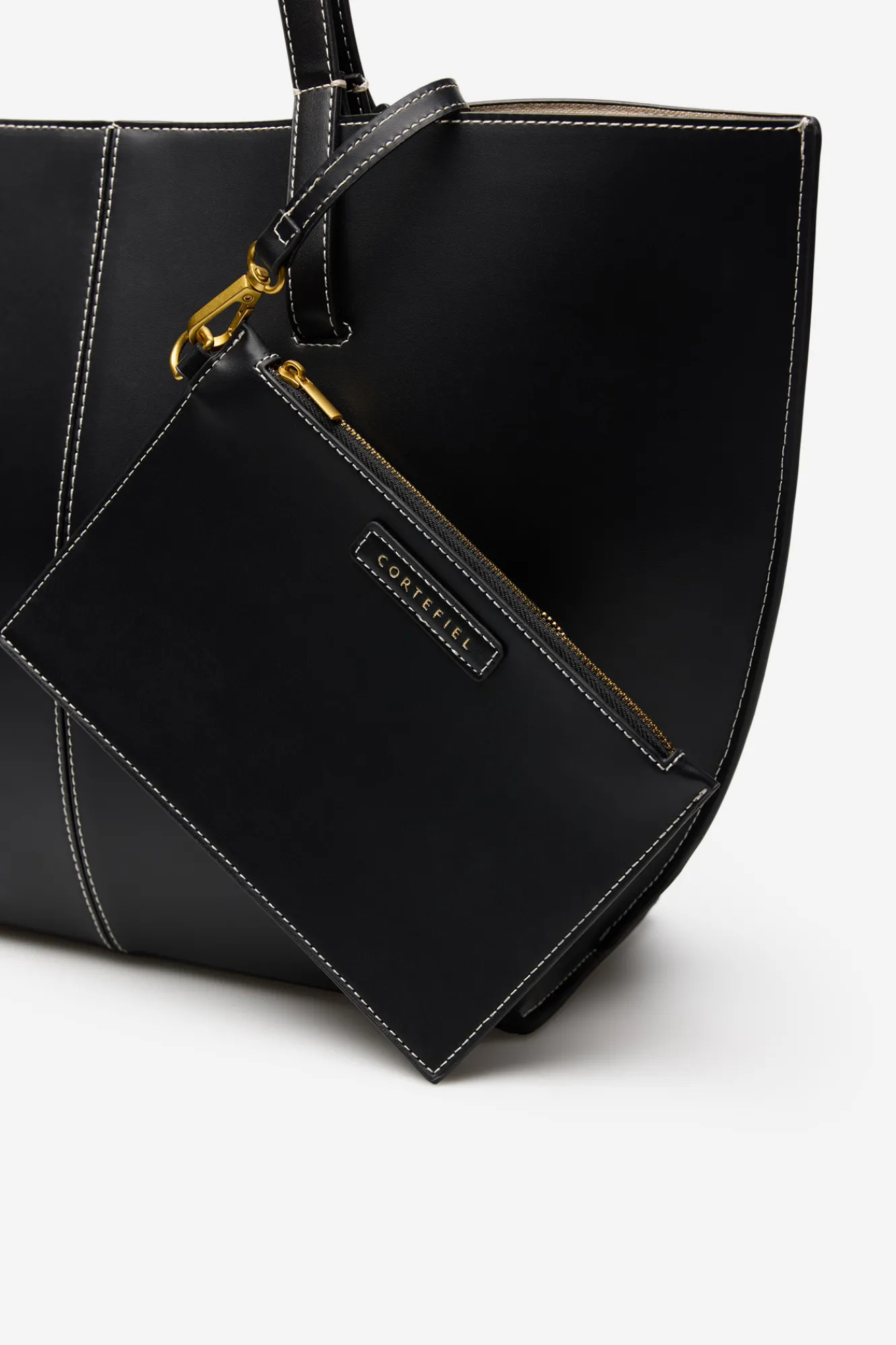 – Corte en panel frontal con pespuntes a contraste