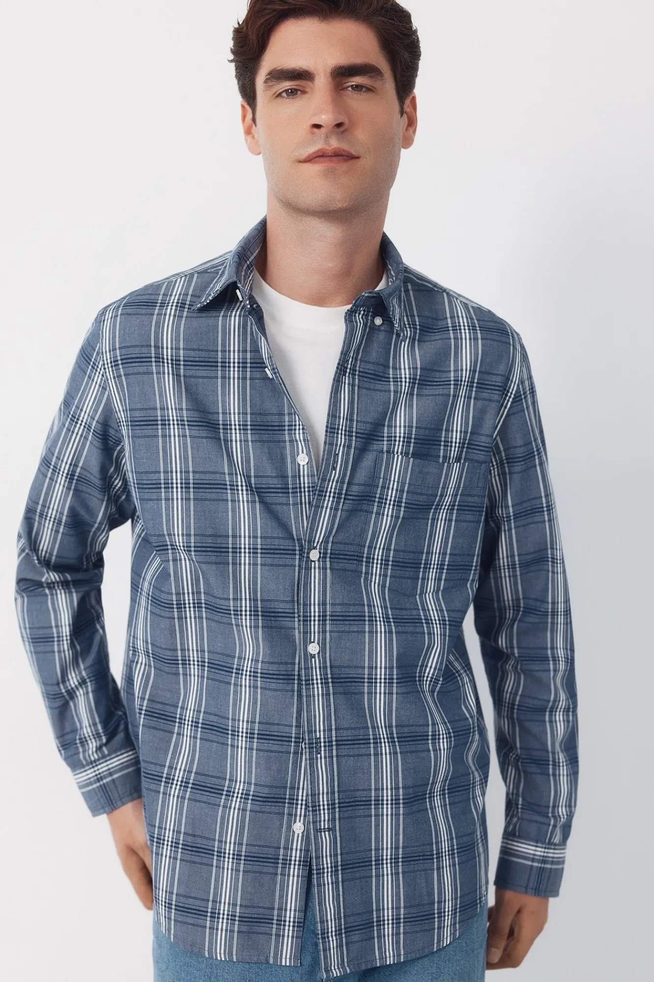 -Cuello soft sin botonesbolsillo en el pecho