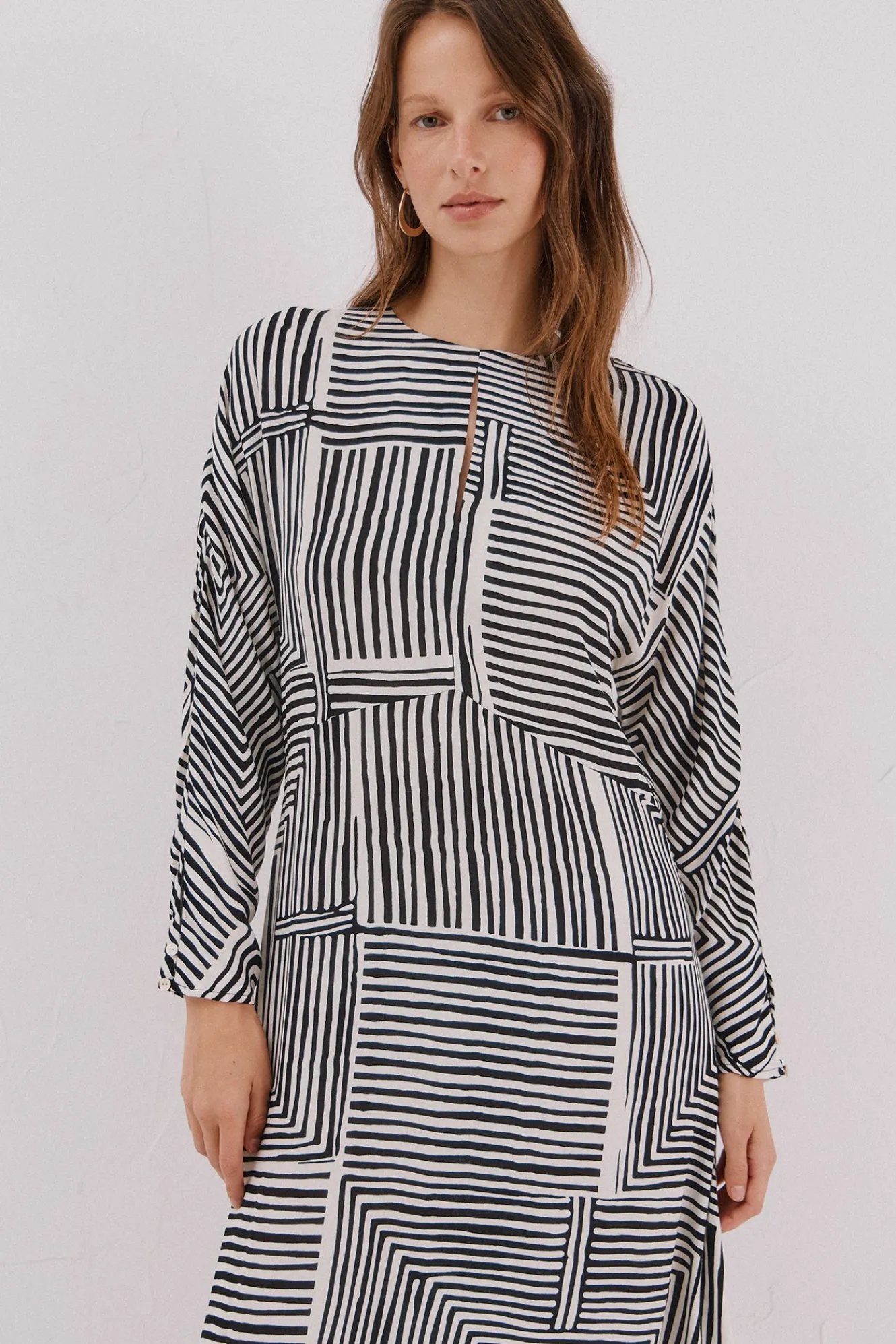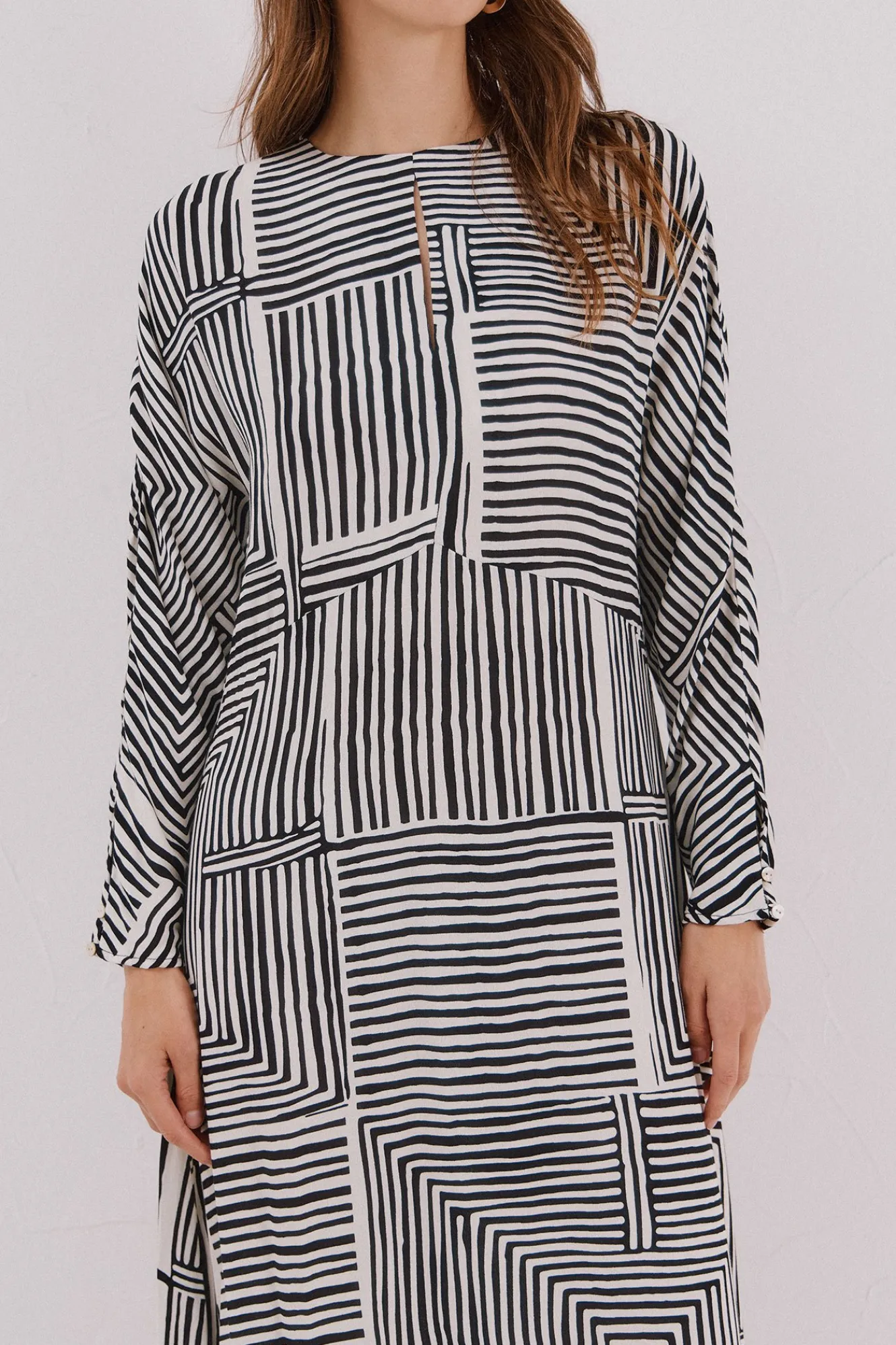 – Escote redondo y manga larga murciéladgo.