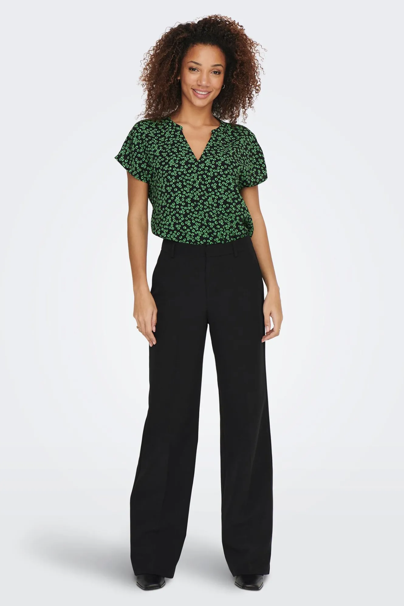 – Corte suelto y cuello mao con pequeña abertura en pico.