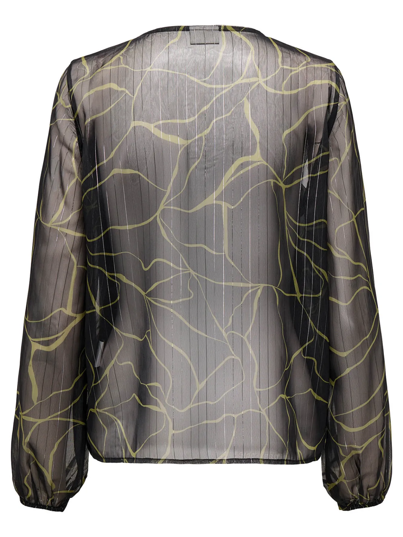 – Corte holgado, cuello pico, manga abullonada transparente con puño ajustado y estampado abstracto .
