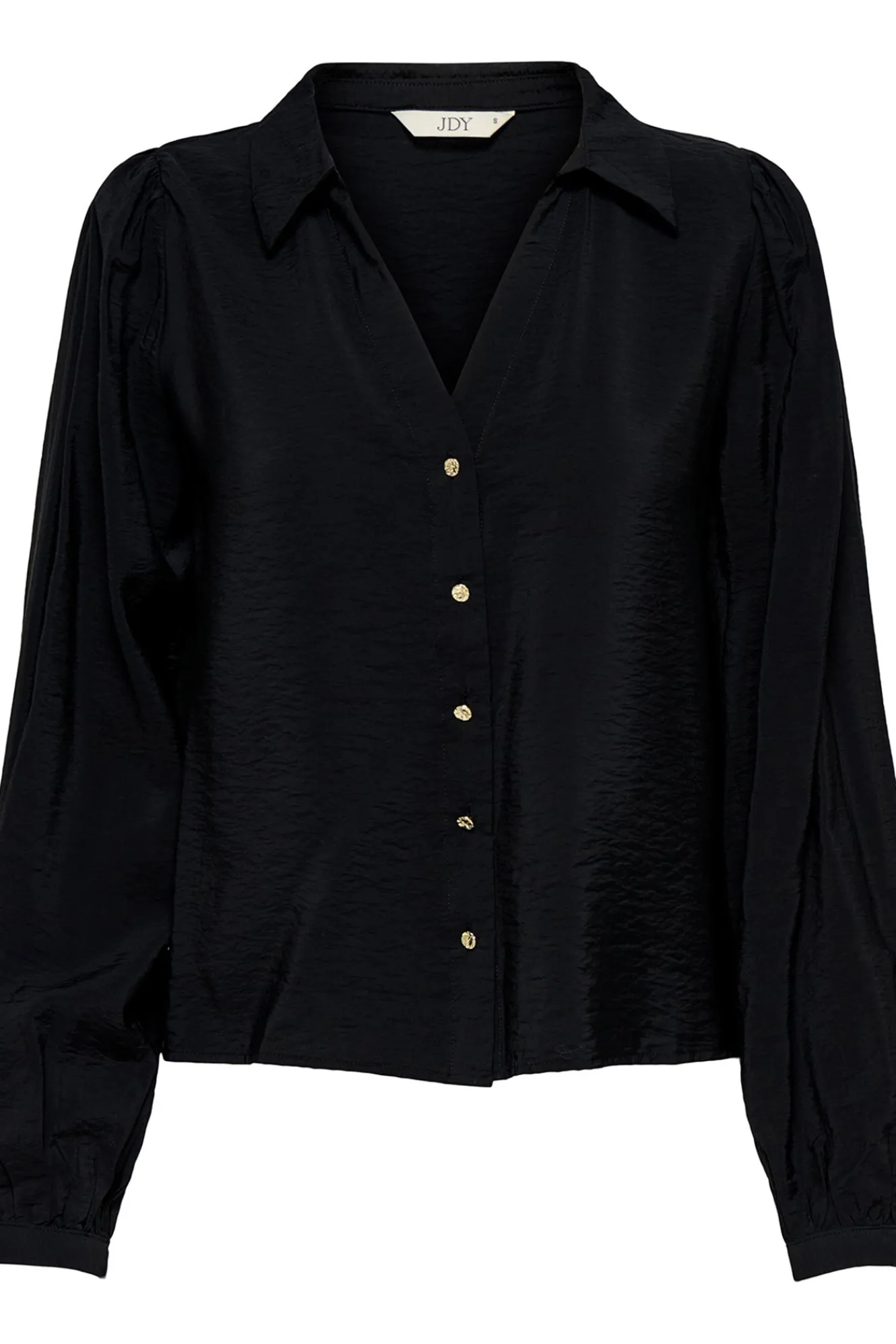 – Corte holgado, cuello clásico abierto en pico, manga ligeramente abullonada, cierre de botones delantero y estampado animal print.