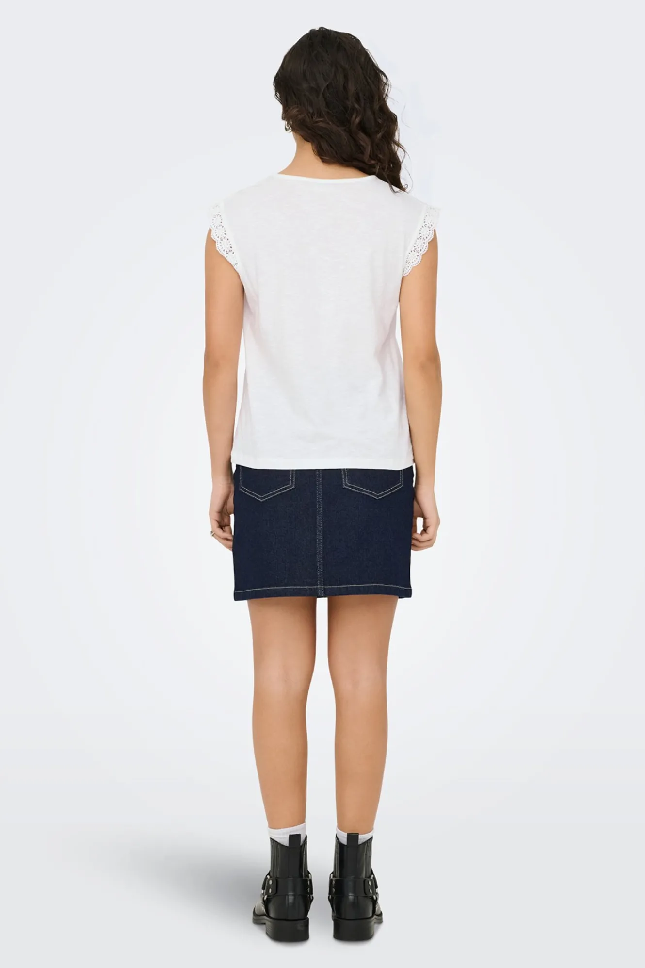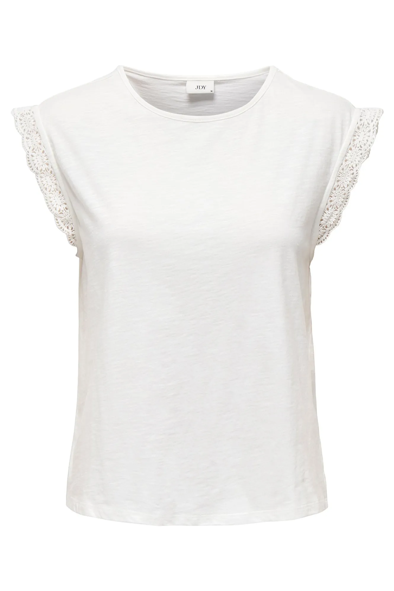 – Corte recto y suelto, cuello redondo y detalle de encaje en los hombros.