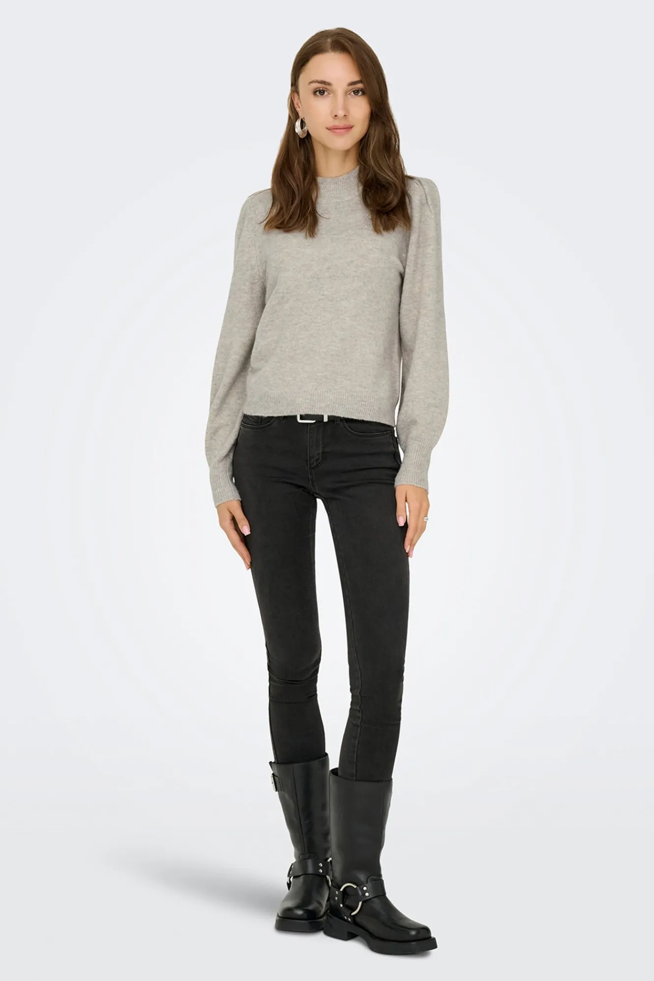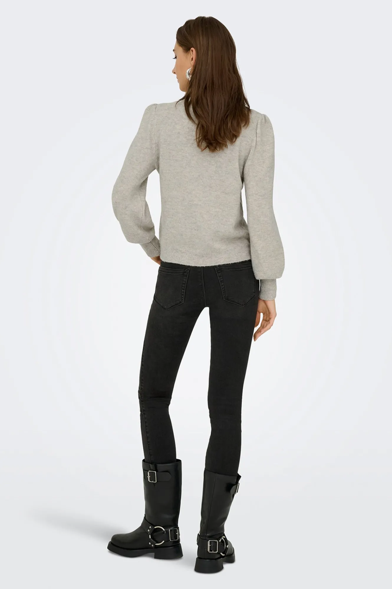 – Corte recto, manga larga ligeramente abullonada y puños ajustados.