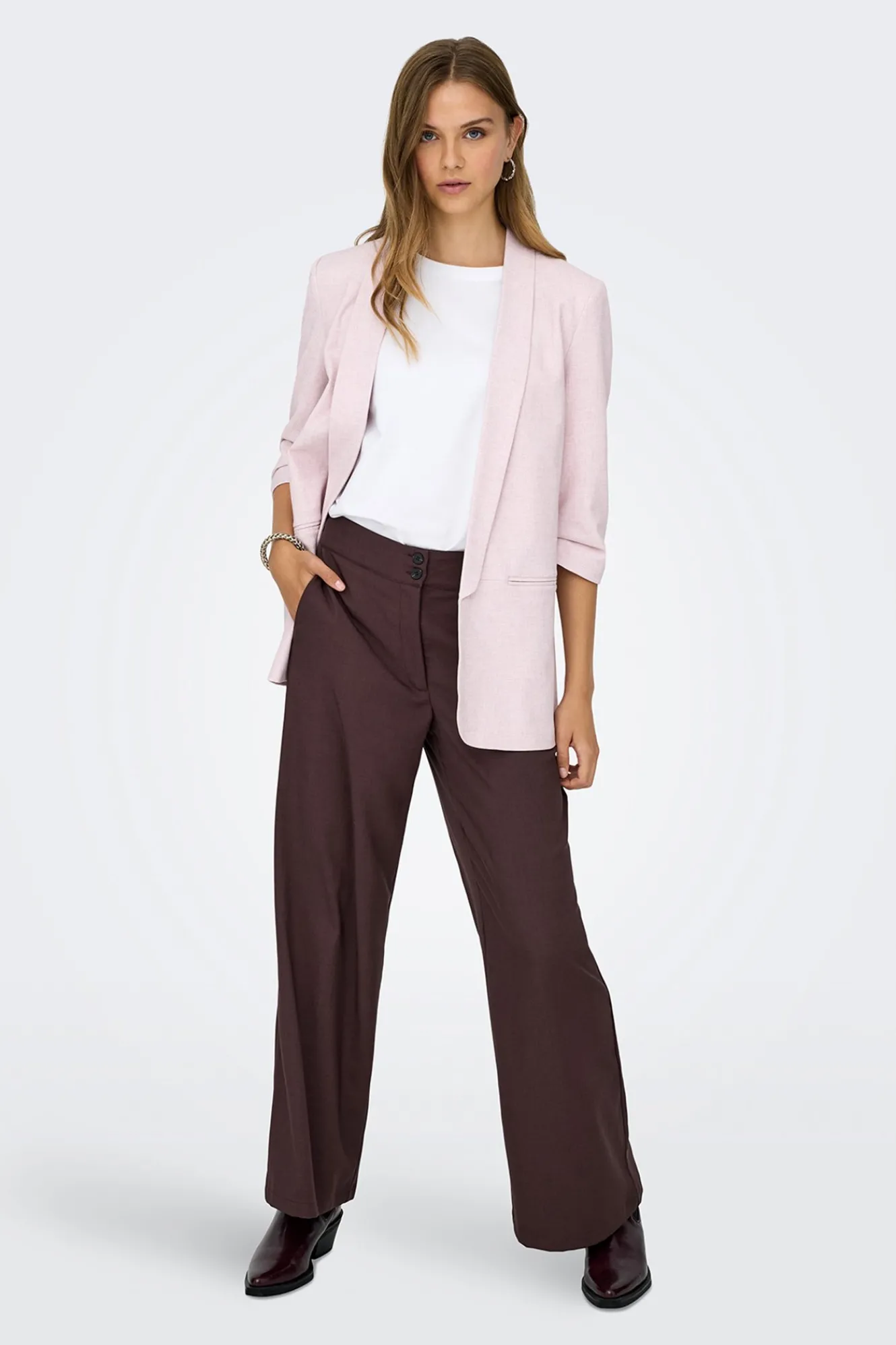 – Tiro alto, cierre de doble botón y cremallera, patente elástica trasera en la cintura y bolsillos laterales.
