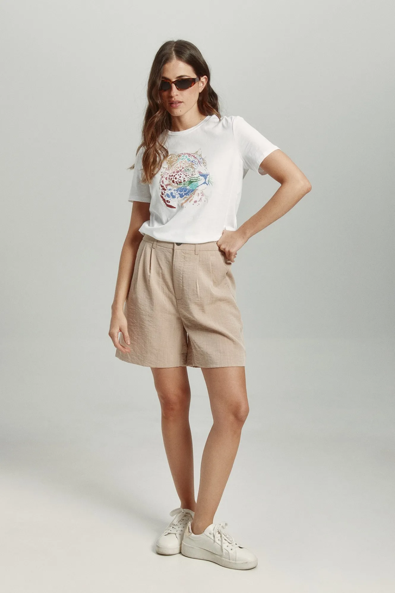 – Cintura alta elástica con trabillas para cinturón.