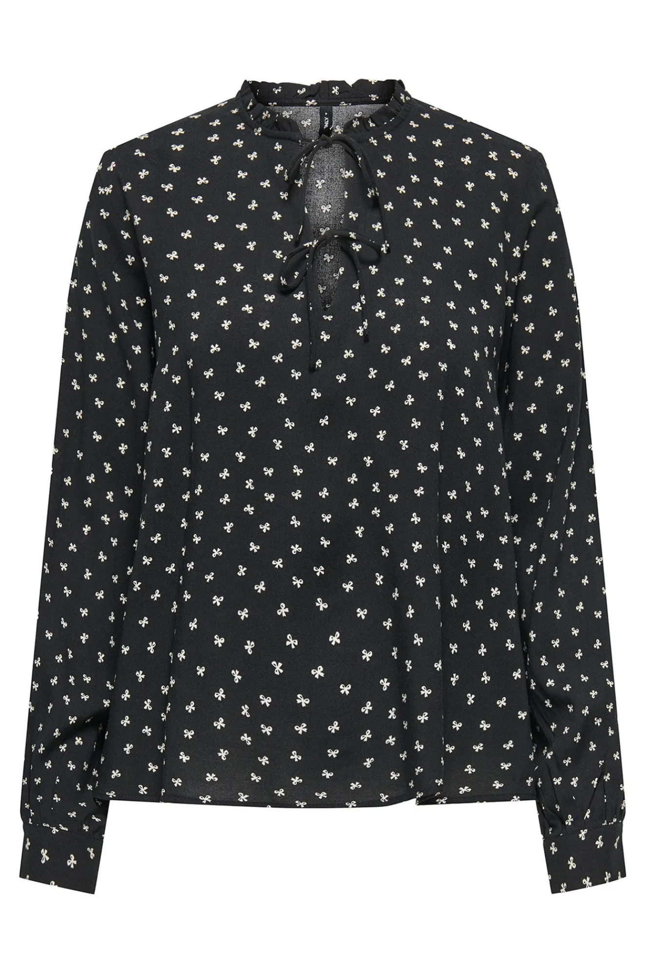 – Cuello mao con detalle de lazadas.