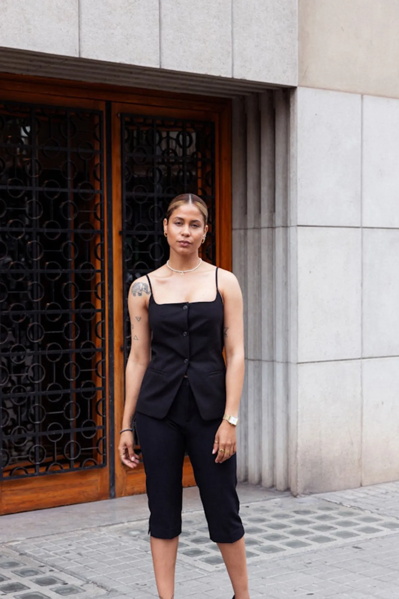 – Cierre frontal recto con botones y bolsillos de vivos frontales.