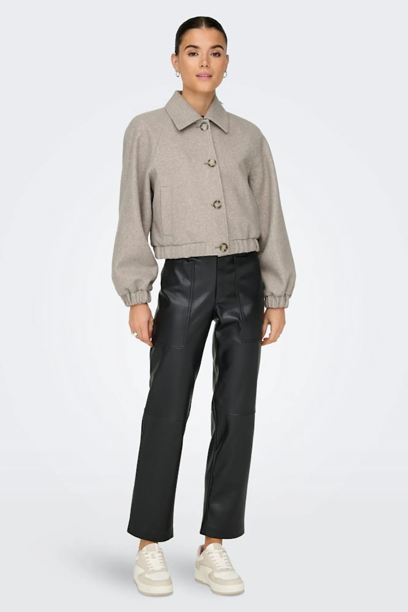 – Manga larga ligeramente abullonada acabada en puño elástico.