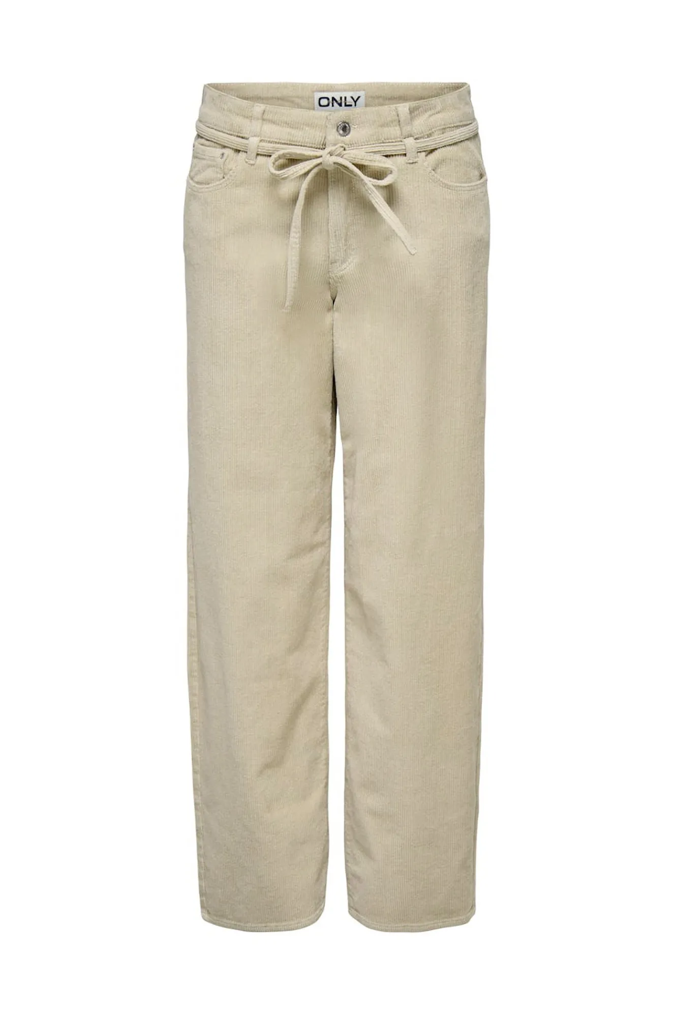 – Cintura media con trabillas y cinturón del mismo tejido.
