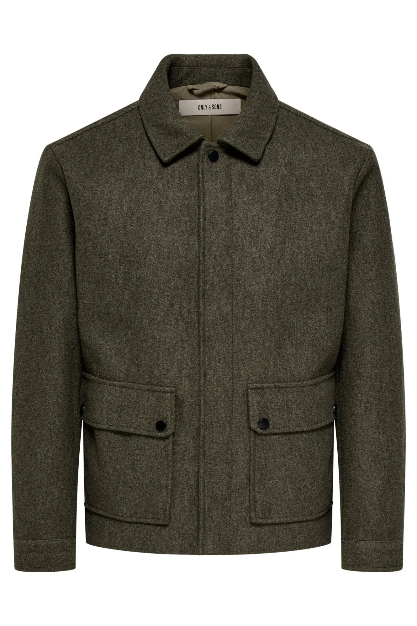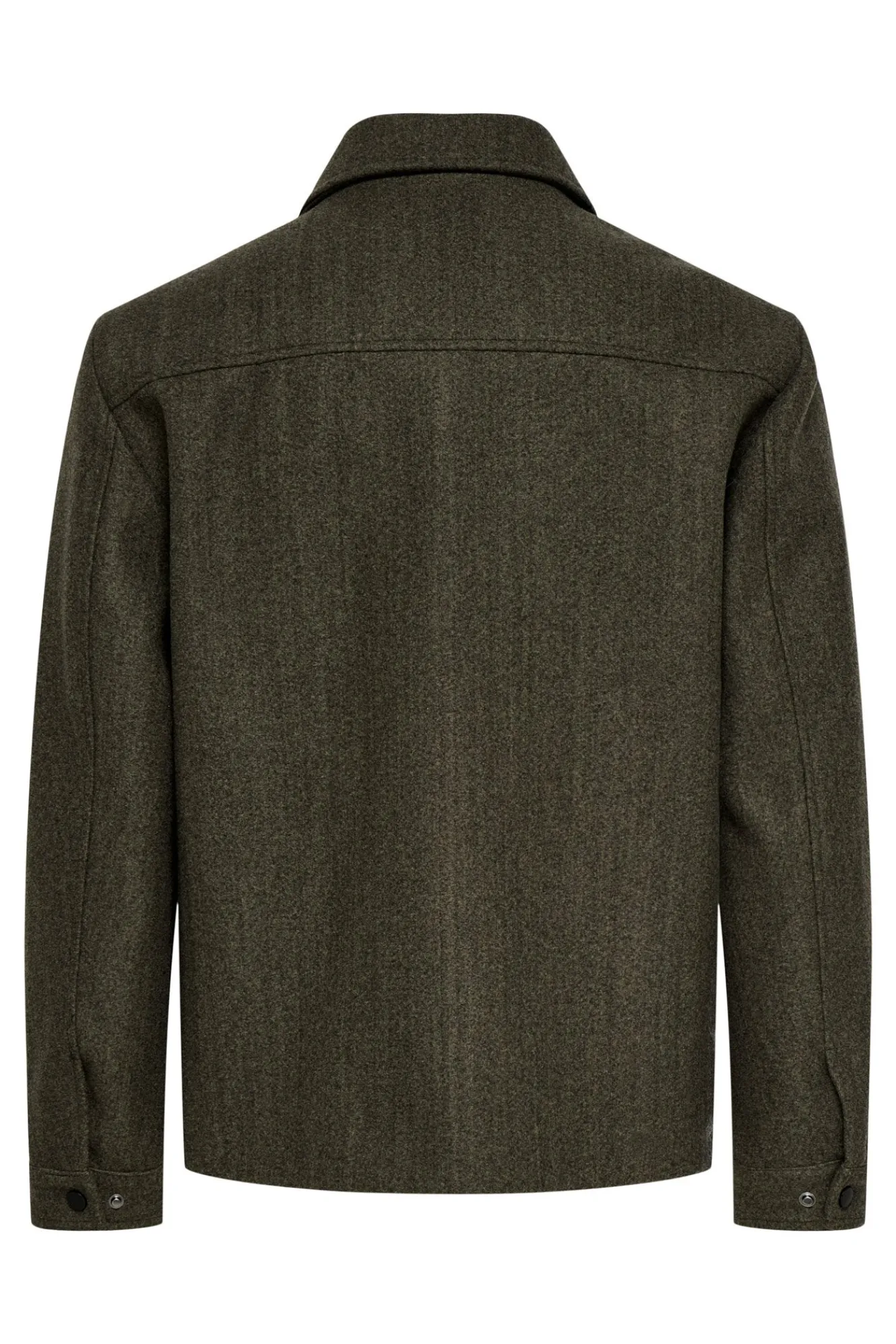 – Corte recto y amplio, manga larga, cuello con solapas, cierre de cremallera frontal y solapa con botones a presión y bolsillos laterales y frontales.