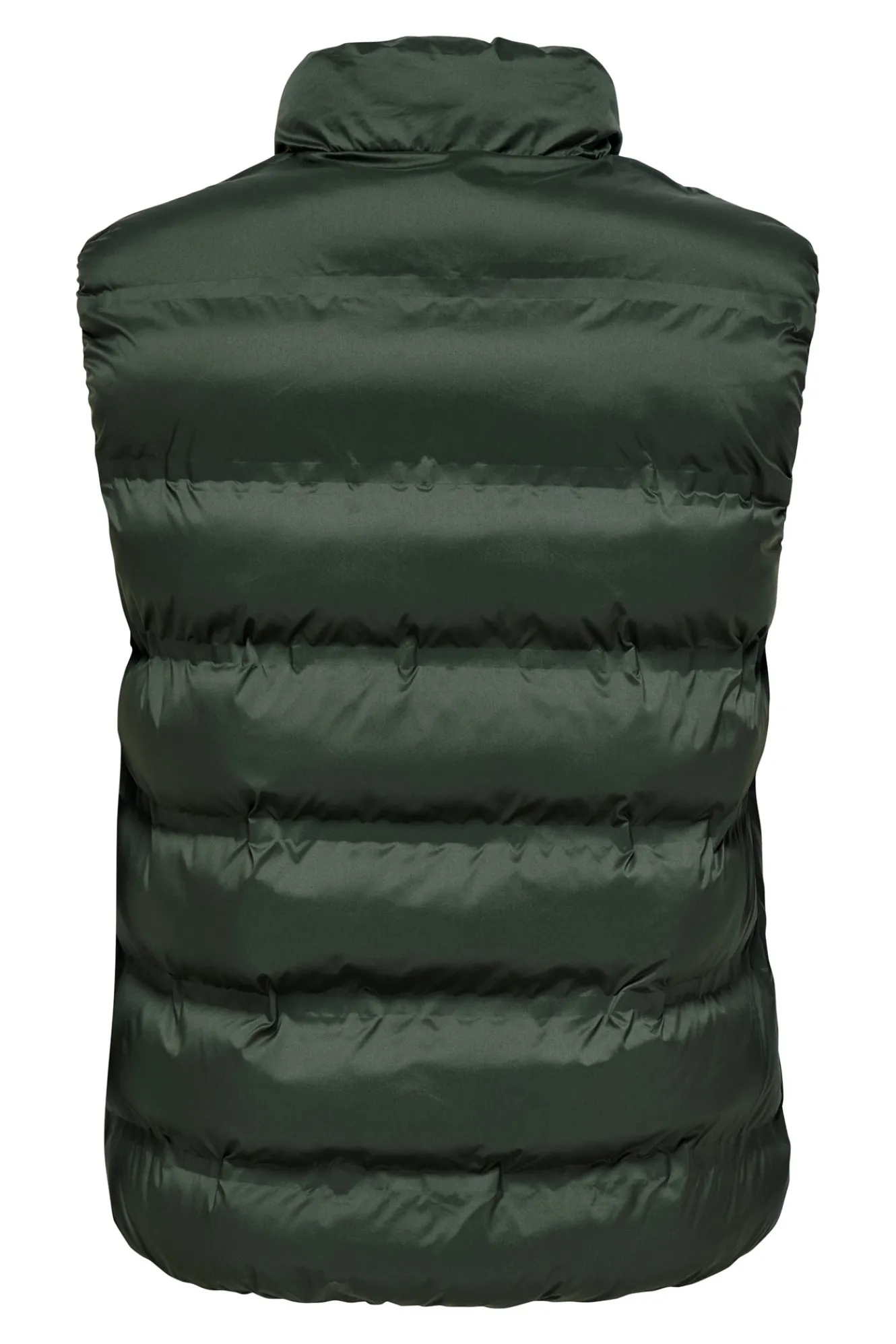 – Corte recto, cuello alto, cierre de cremallera frontal y bolsillos laterales.