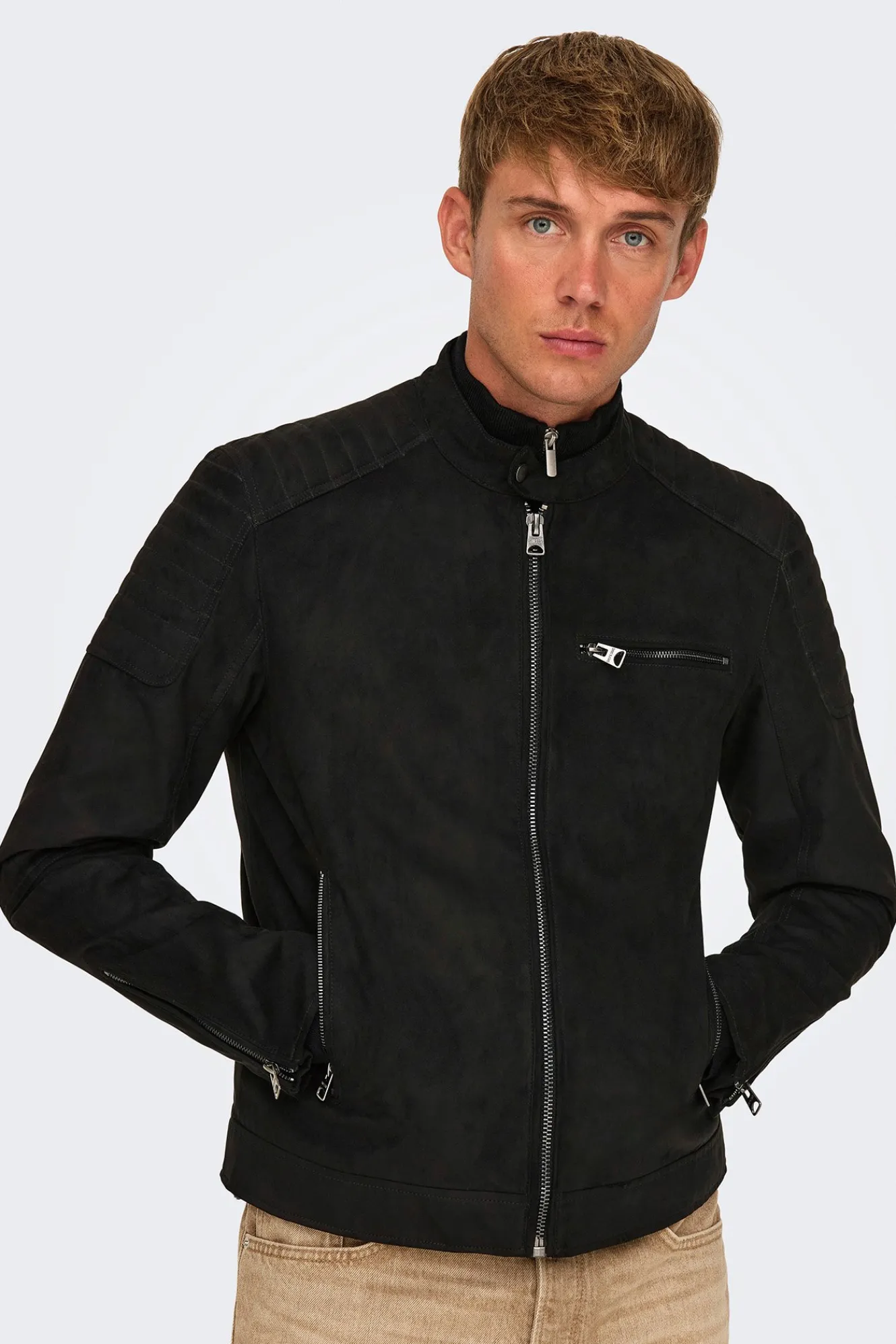 Only & Sons Chaqueta de hombre biker de suede.^Hombre Cazadoras