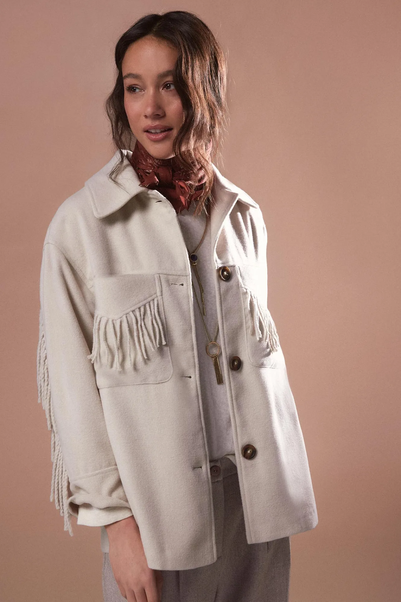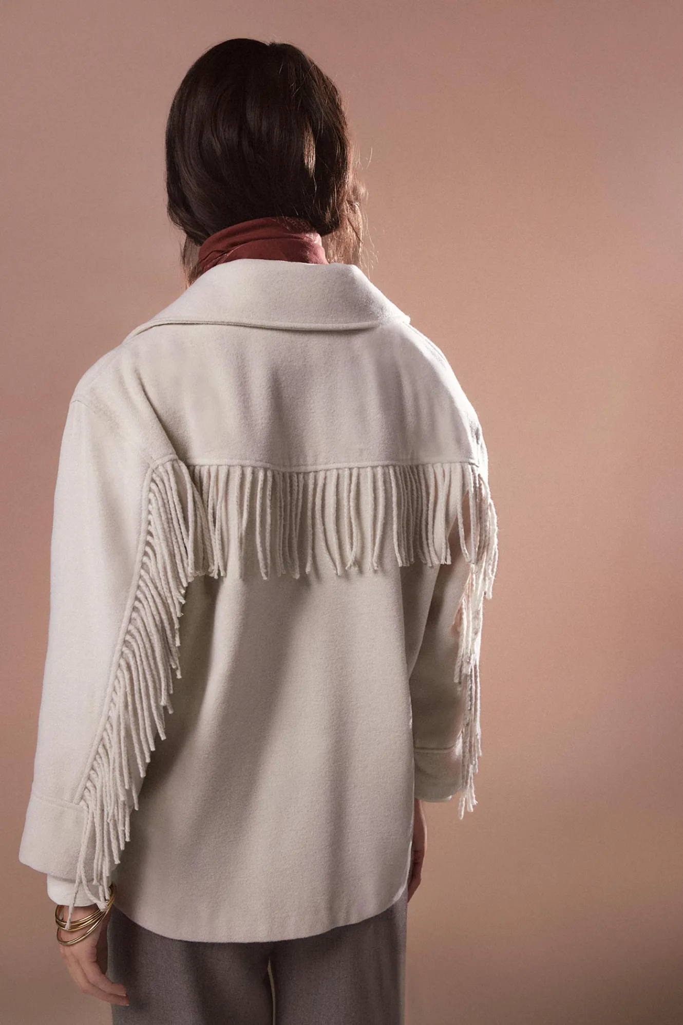 – Decoración en bolsillos de parche con flecos