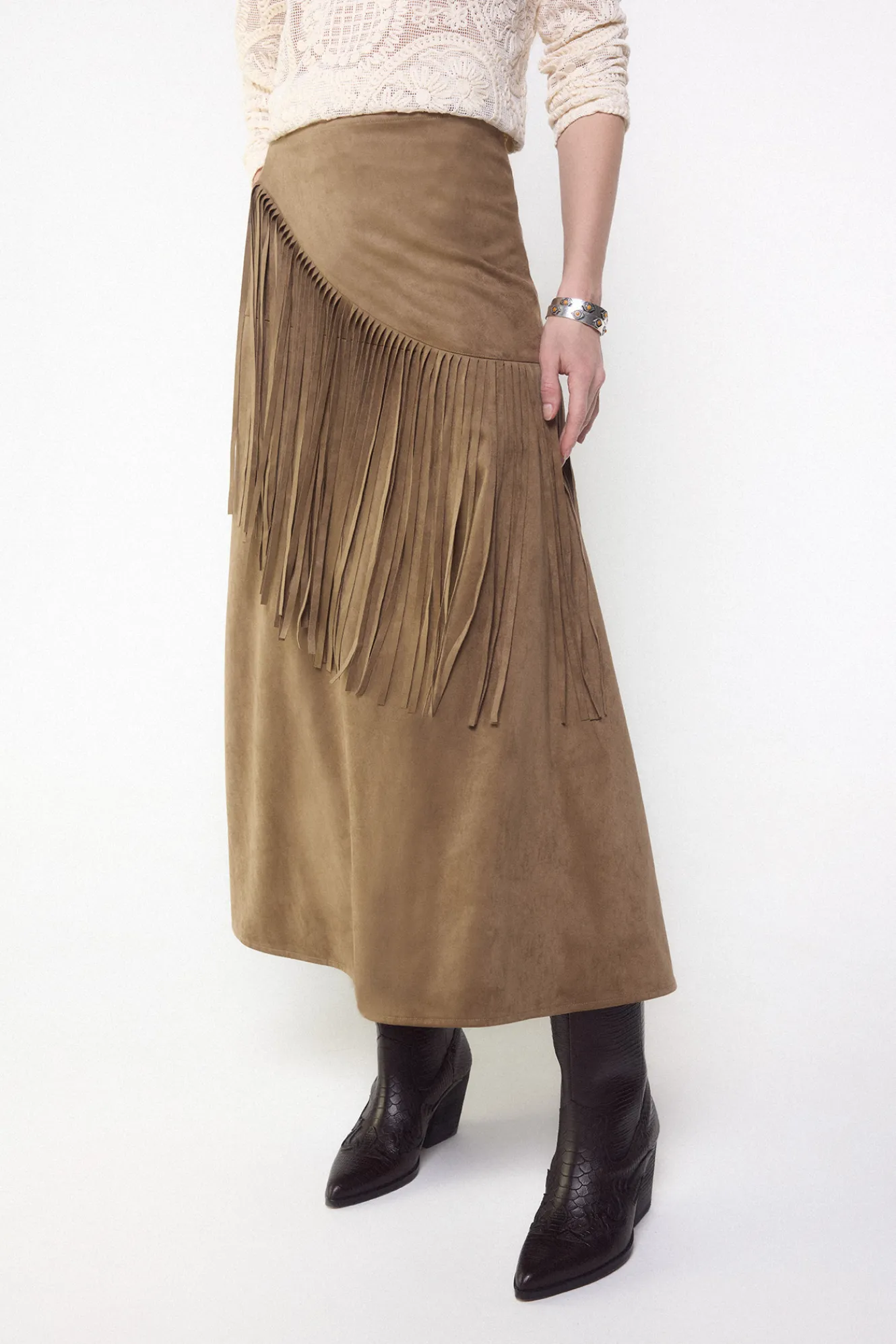 -Con pañuelo a la cintura con flecos extraíble