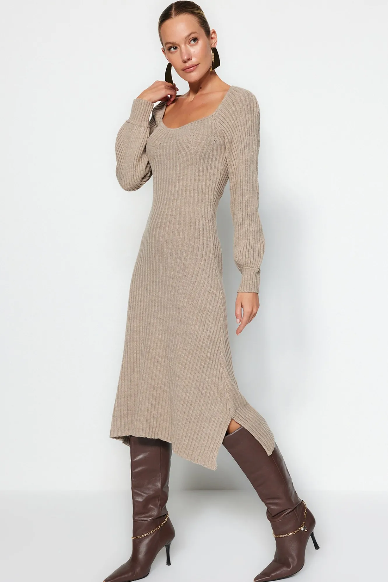Trendyol Vestido midi con escote corazón^Mujer Basic Bar