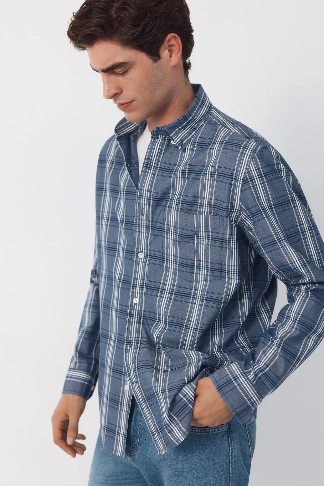 -Cuello soft sin botonesbolsillo en el pecho