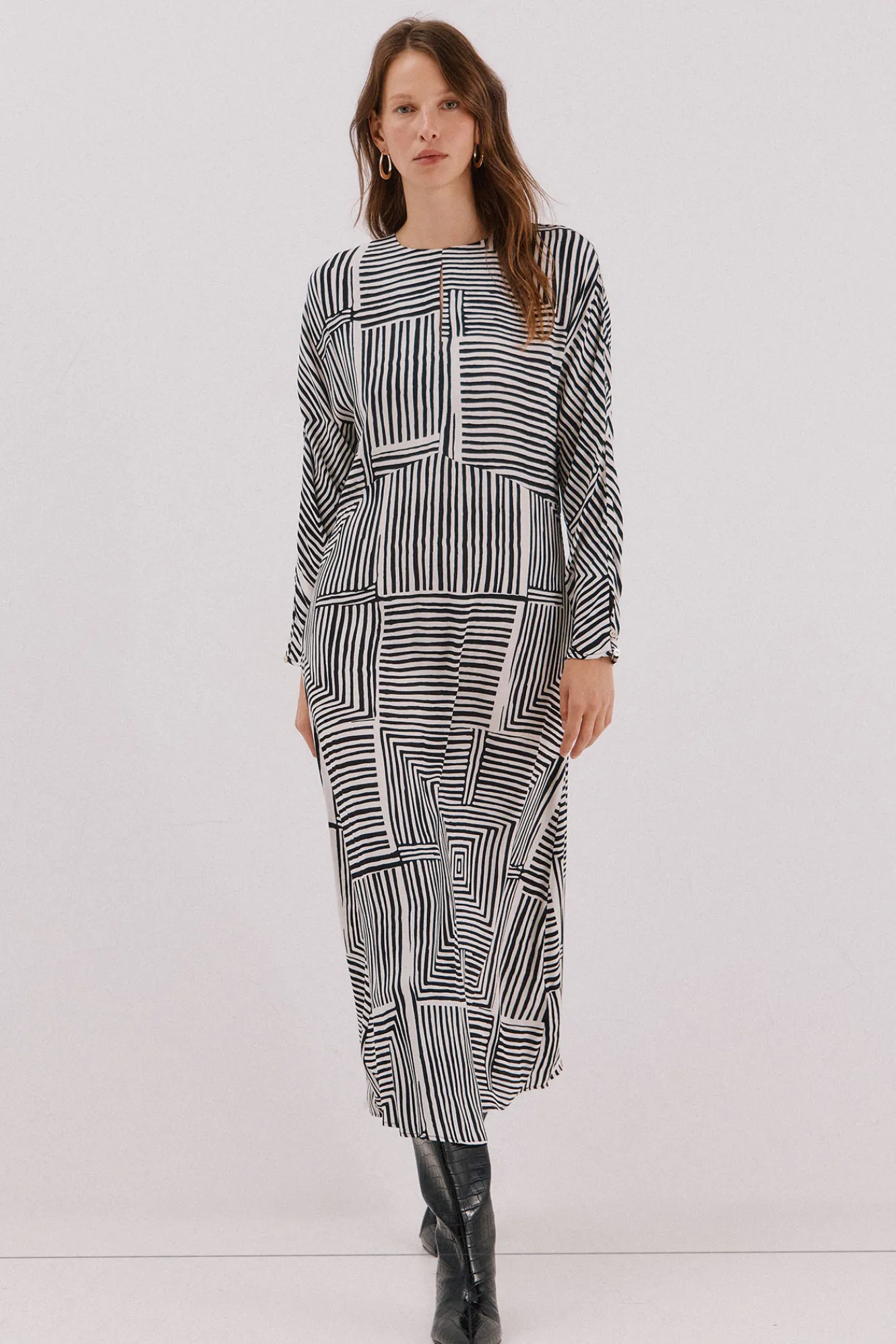 – Escote redondo y manga larga murciéladgo.