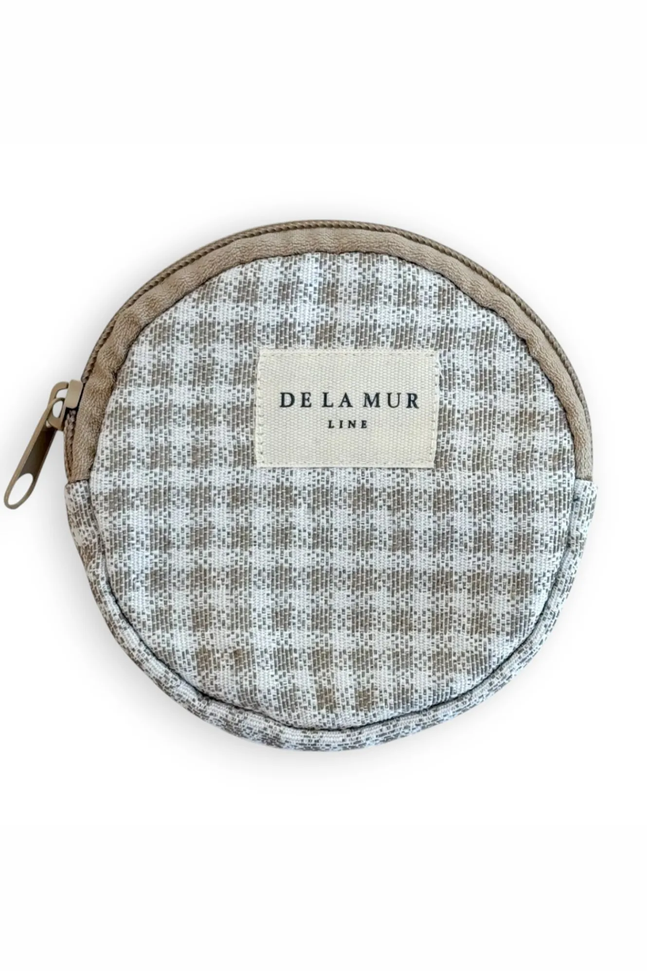 Monedero redondo con cremallera en la parte superior. Con tejido grueso de jacquard 80% algodón y 20% poliéster con estampado a cuadros vichy en tonos beige y crudo. Cada articulo puede tener una variación en el estampado, dependiendo de donde se haya efectuado el corte de la pieza. Forrado de tejido grueso de color gris en la parte interior. Para su correcto mantenimiento se aconseja lavarlo en frío y no utilizar secadora.
