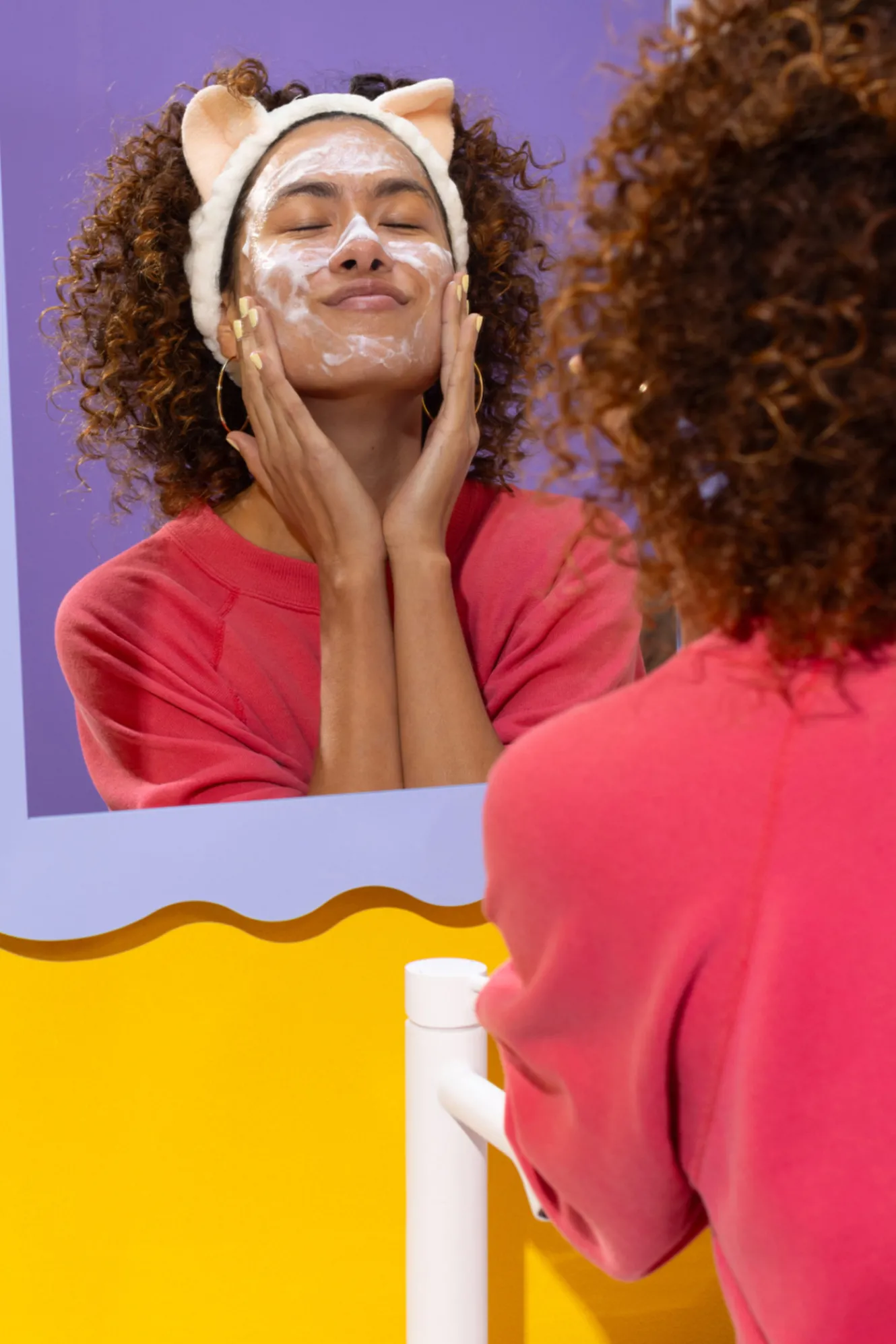 -Humedece el rostro y aplica 2 pulsaciones del Rose Quartz Facial Cleanser.