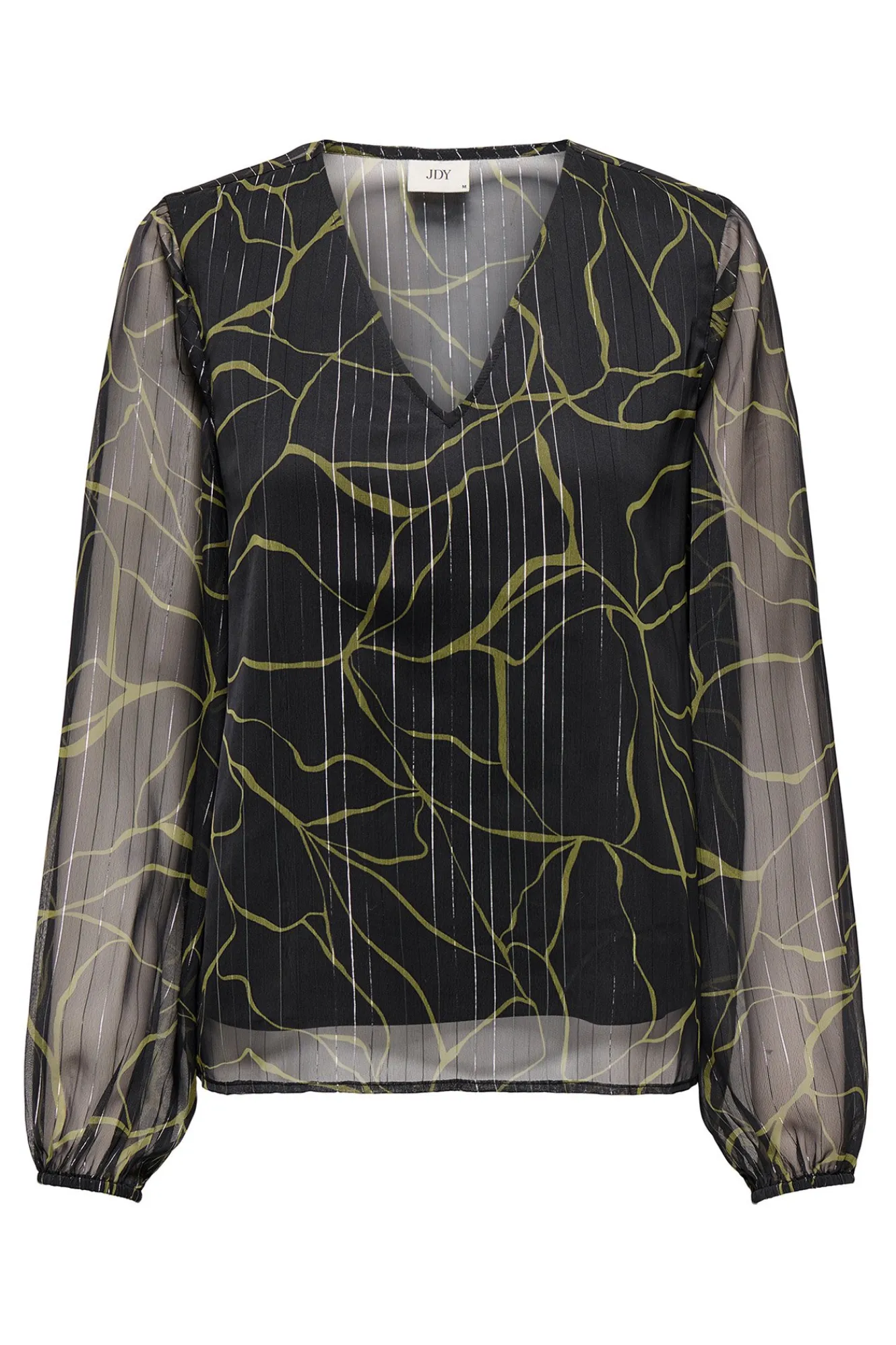 – Corte holgado, cuello pico, manga abullonada transparente con puño ajustado y estampado abstracto .