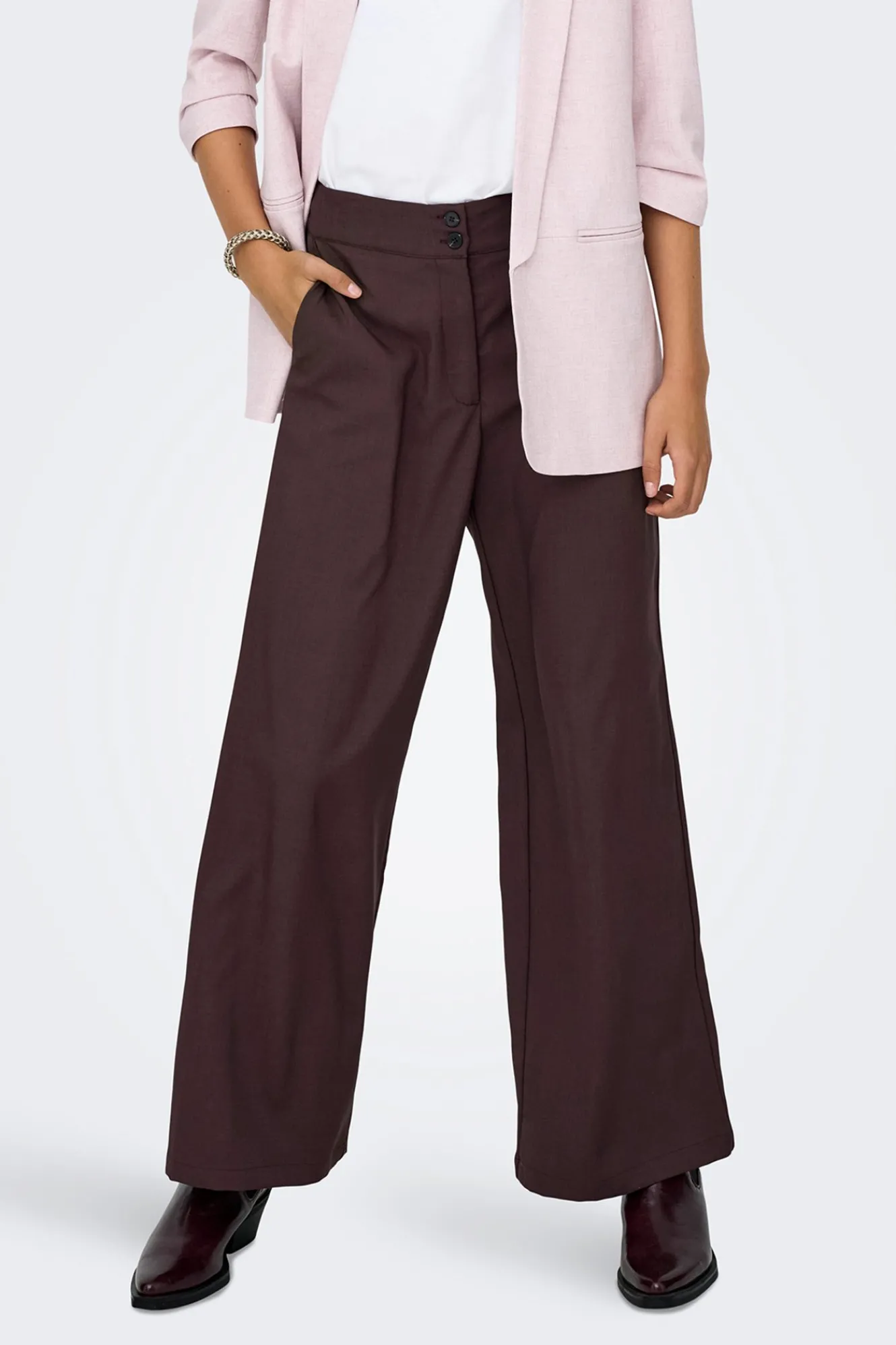 – Tiro alto, cierre de doble botón y cremallera, patente elástica trasera en la cintura y bolsillos laterales.