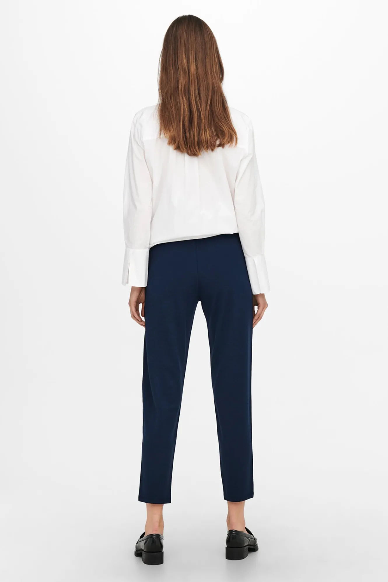 – Tiro alto, detalles de volantes, cintura elástica con cordón ajustable y bolsillos laterales.