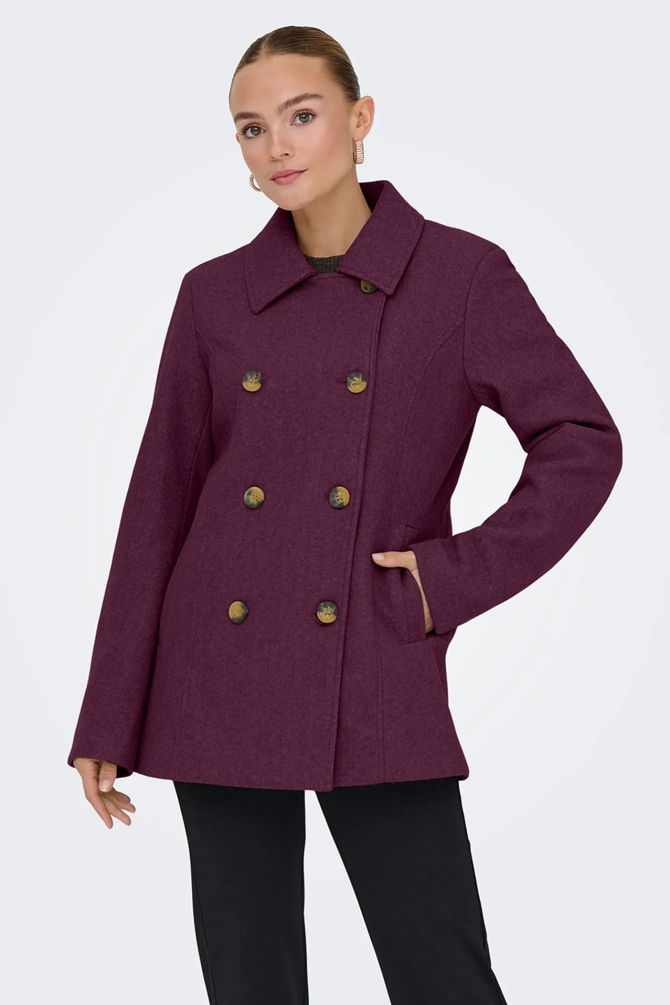 – Cierre frontal cruzado con botonadura doble.