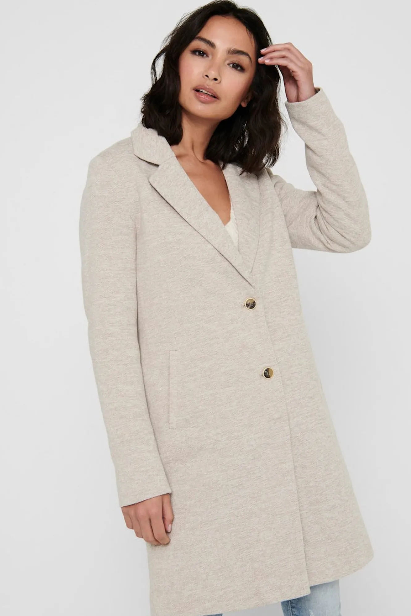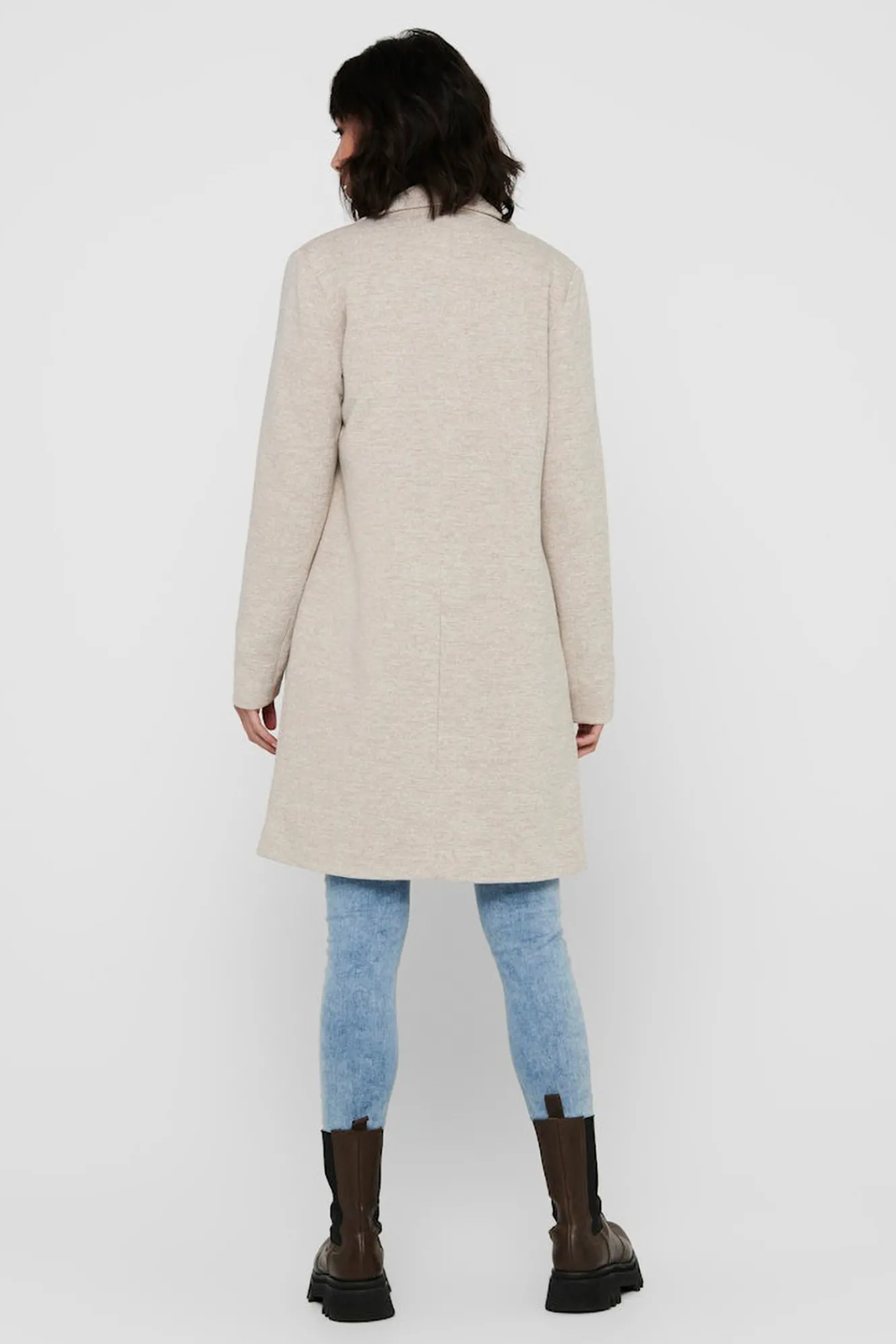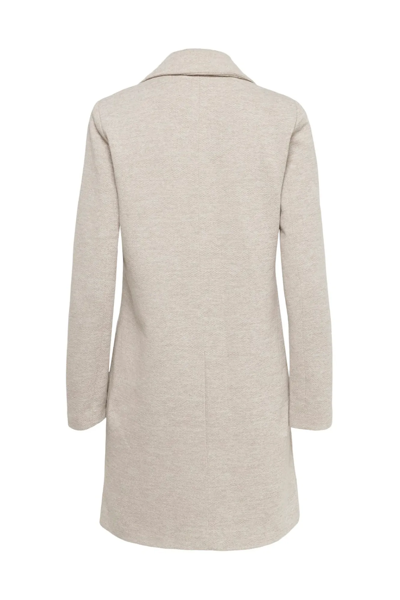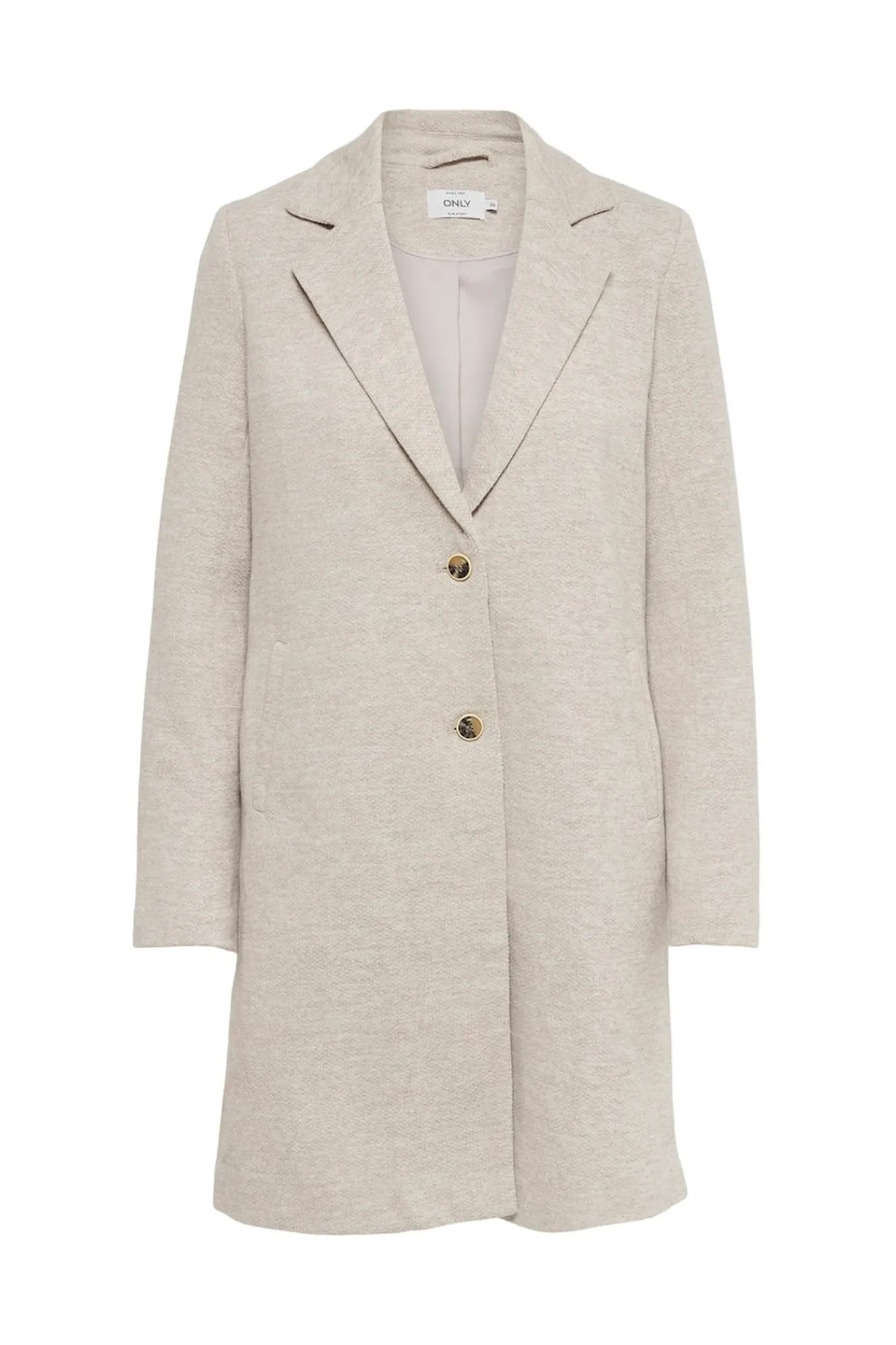 – Cuello de solapa y cierre frontal recto con botones.