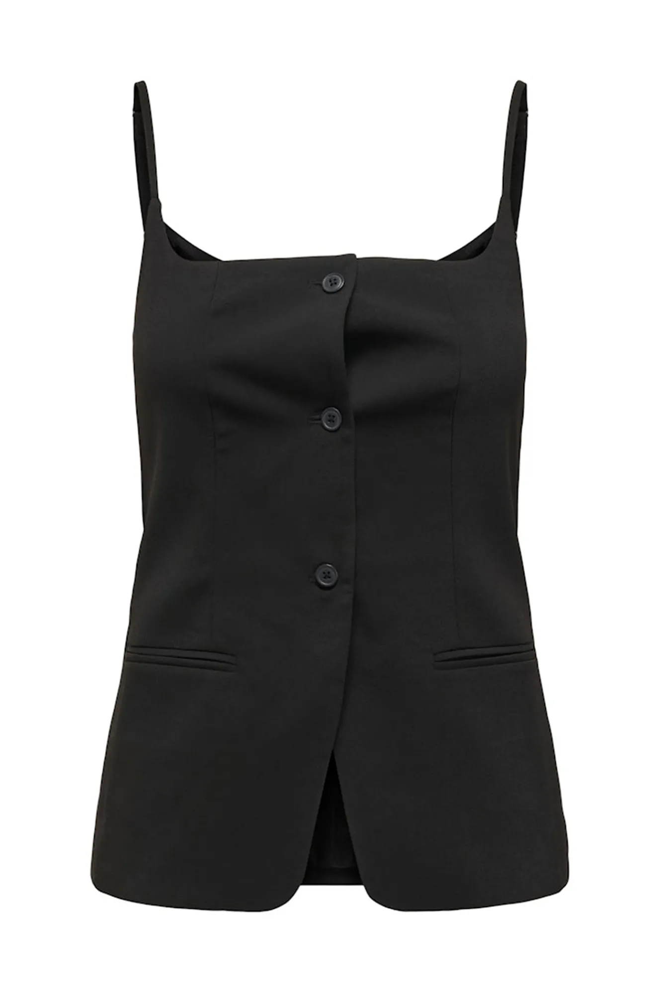– Cierre frontal recto con botones y bolsillos de vivos frontales.