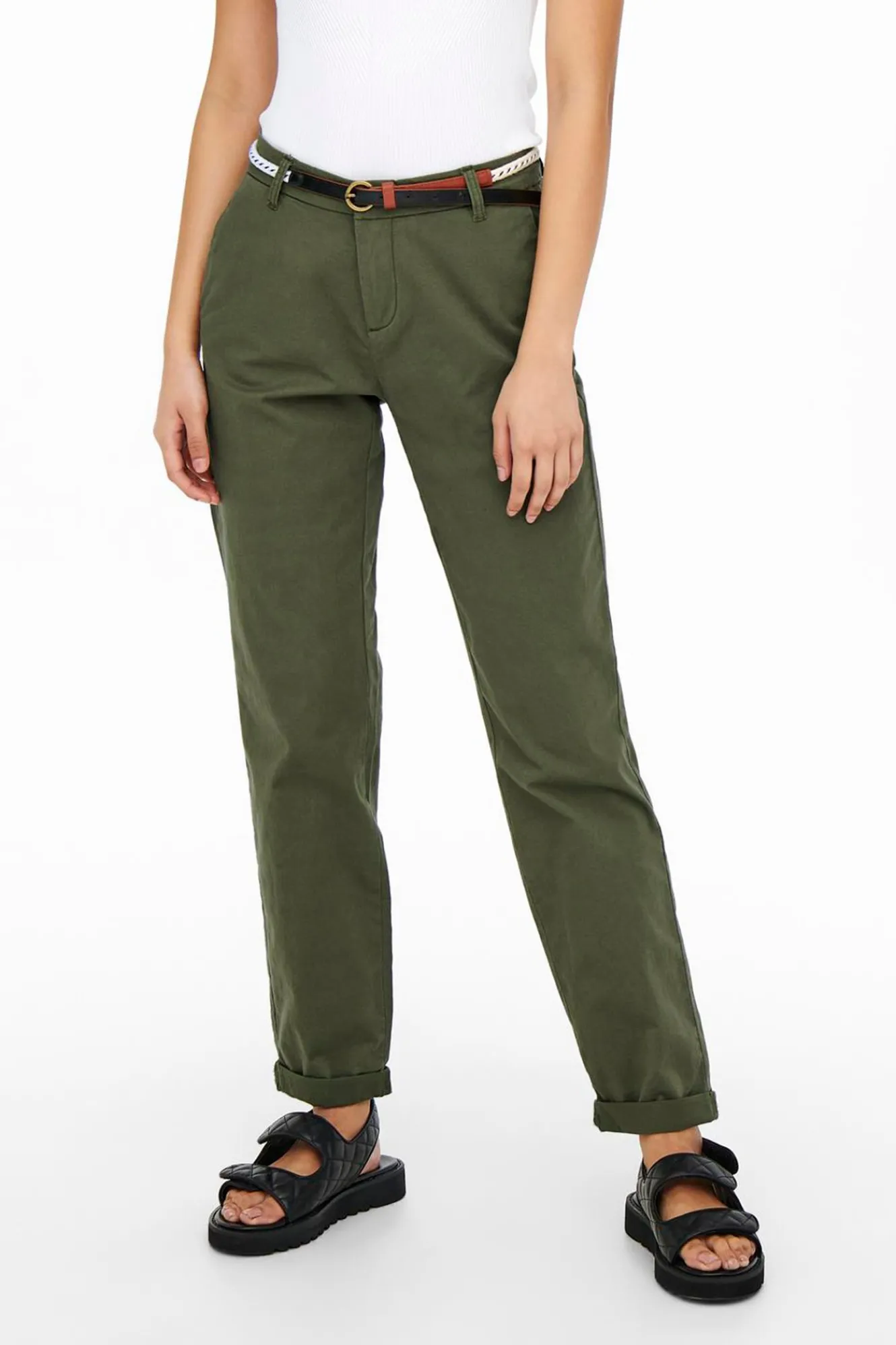 – Cintura media con cinturón.