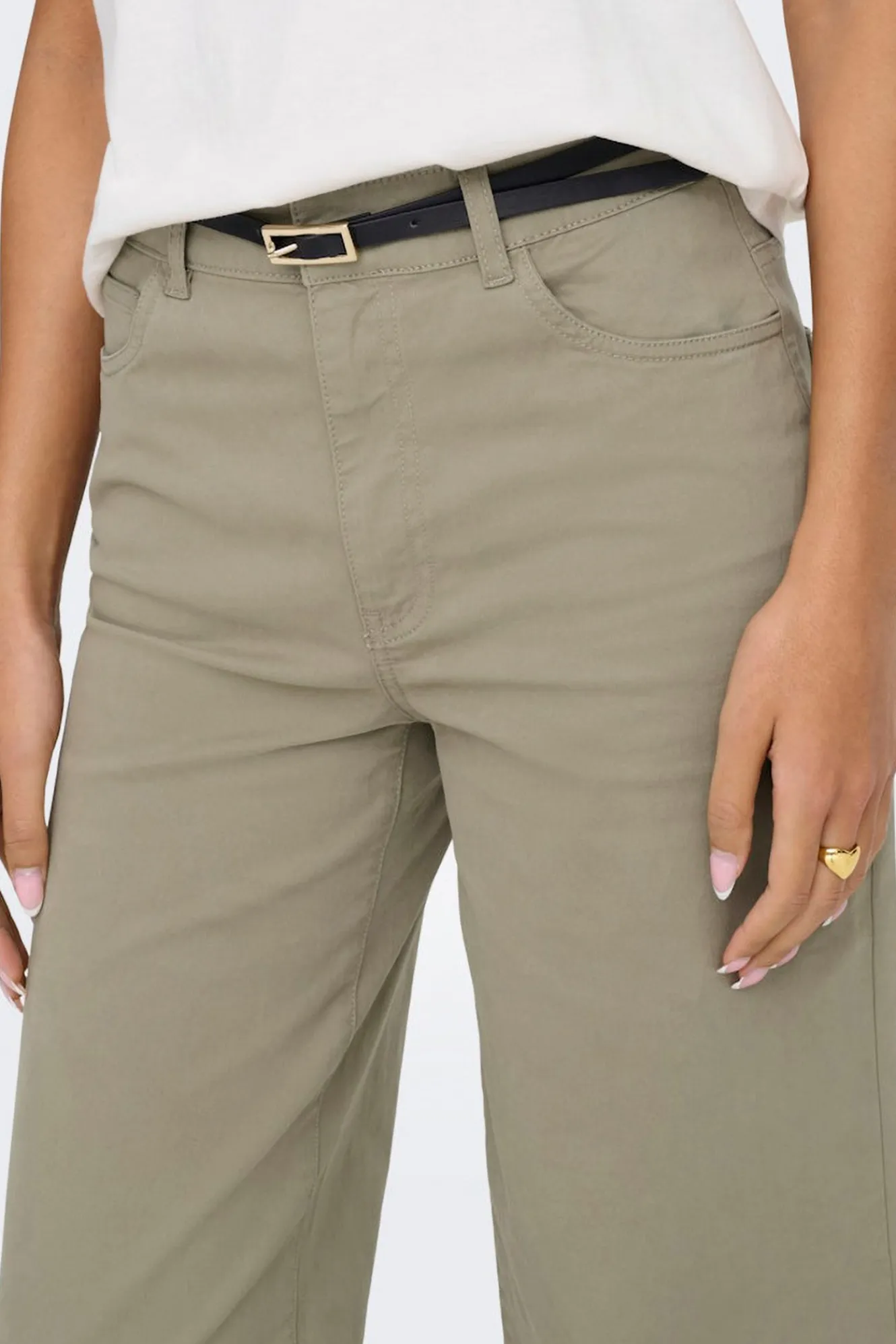 – Cintura alta con trabillas para cinturón.