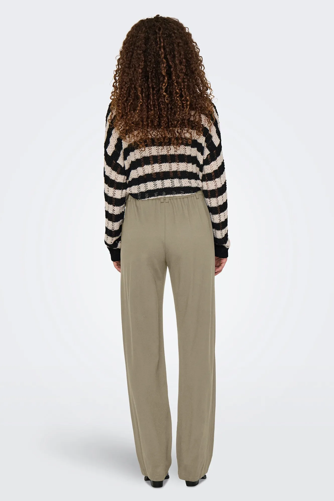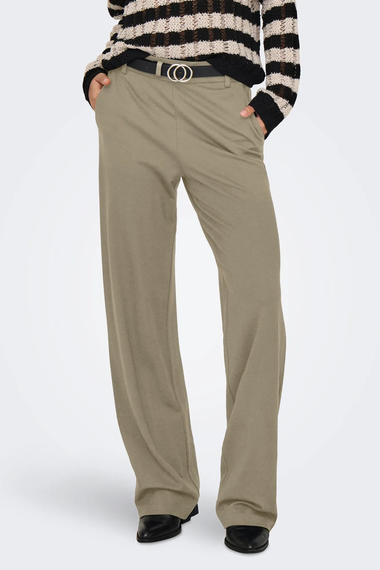 – Cintura media elástica con trabillas para el cinturón.