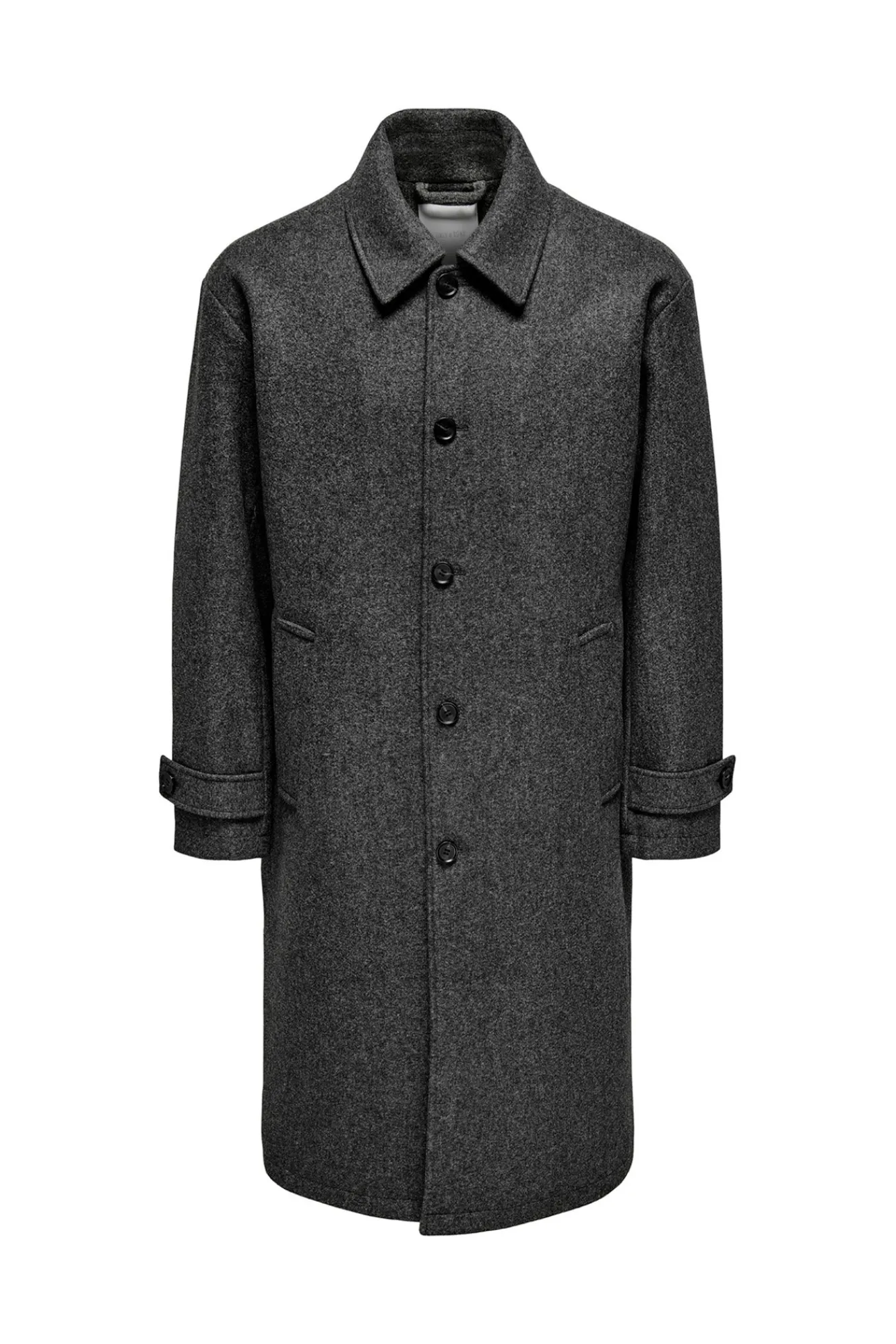 – Corte recto, manga larga con puño ajustable, cuello con solapas, cierre de botones frontal y bolsillos laterales.
