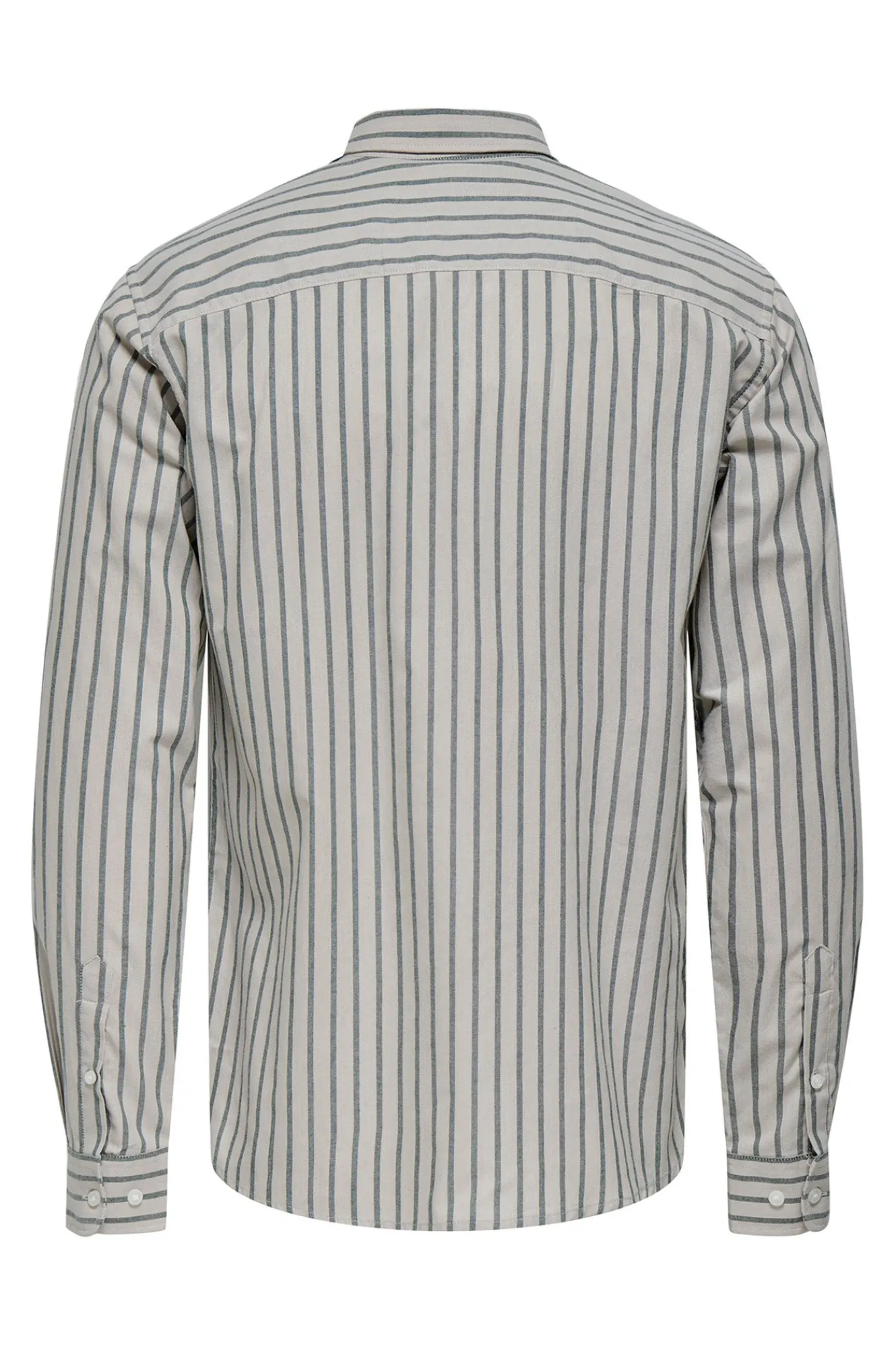 – Corte slim fit, cuello clásico, cierre de botones delantero y estampado de rayas.