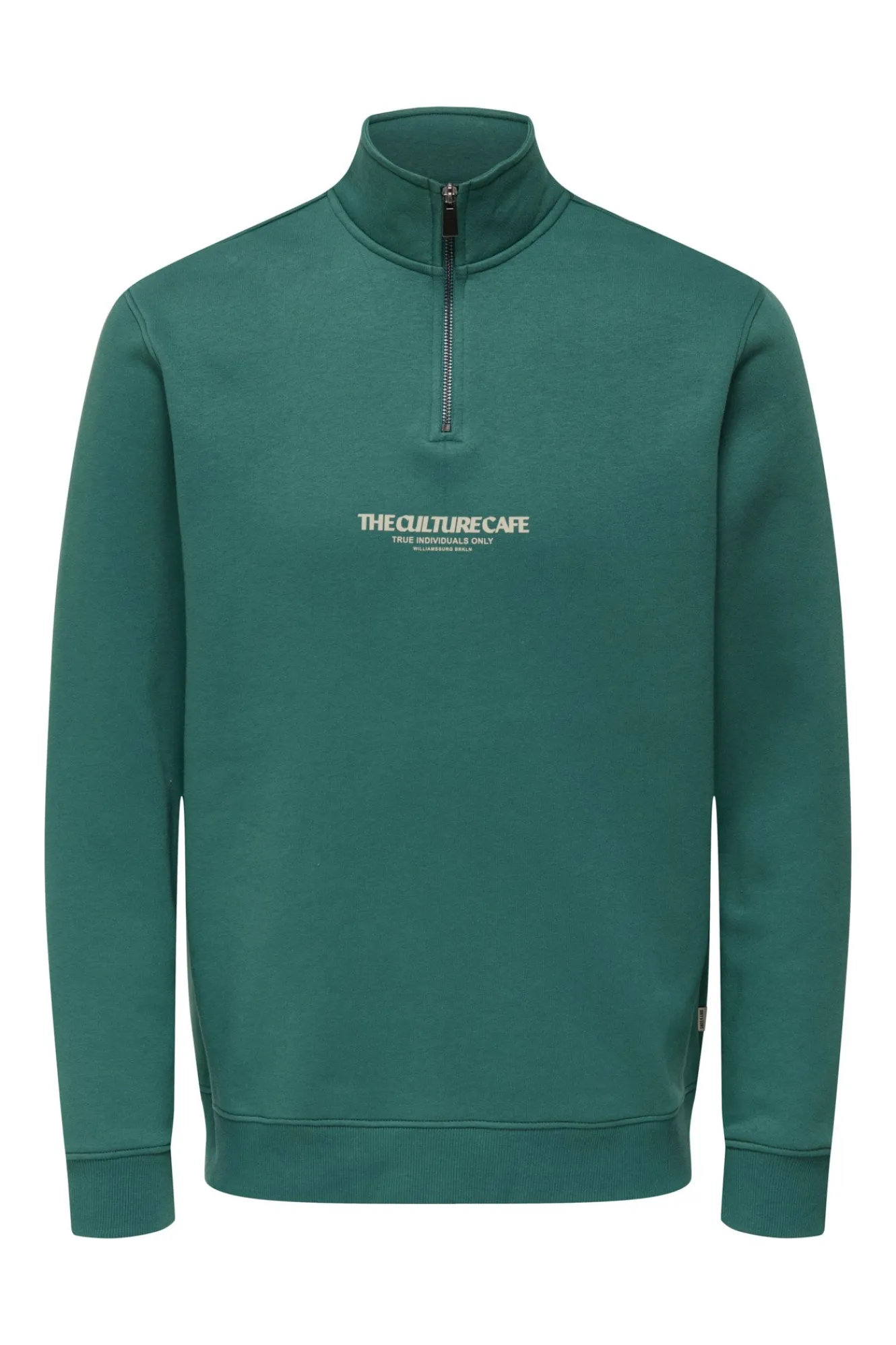 – Corte regular, cuello alto con cierre de cremallera, manga larga y dibujo frontal.