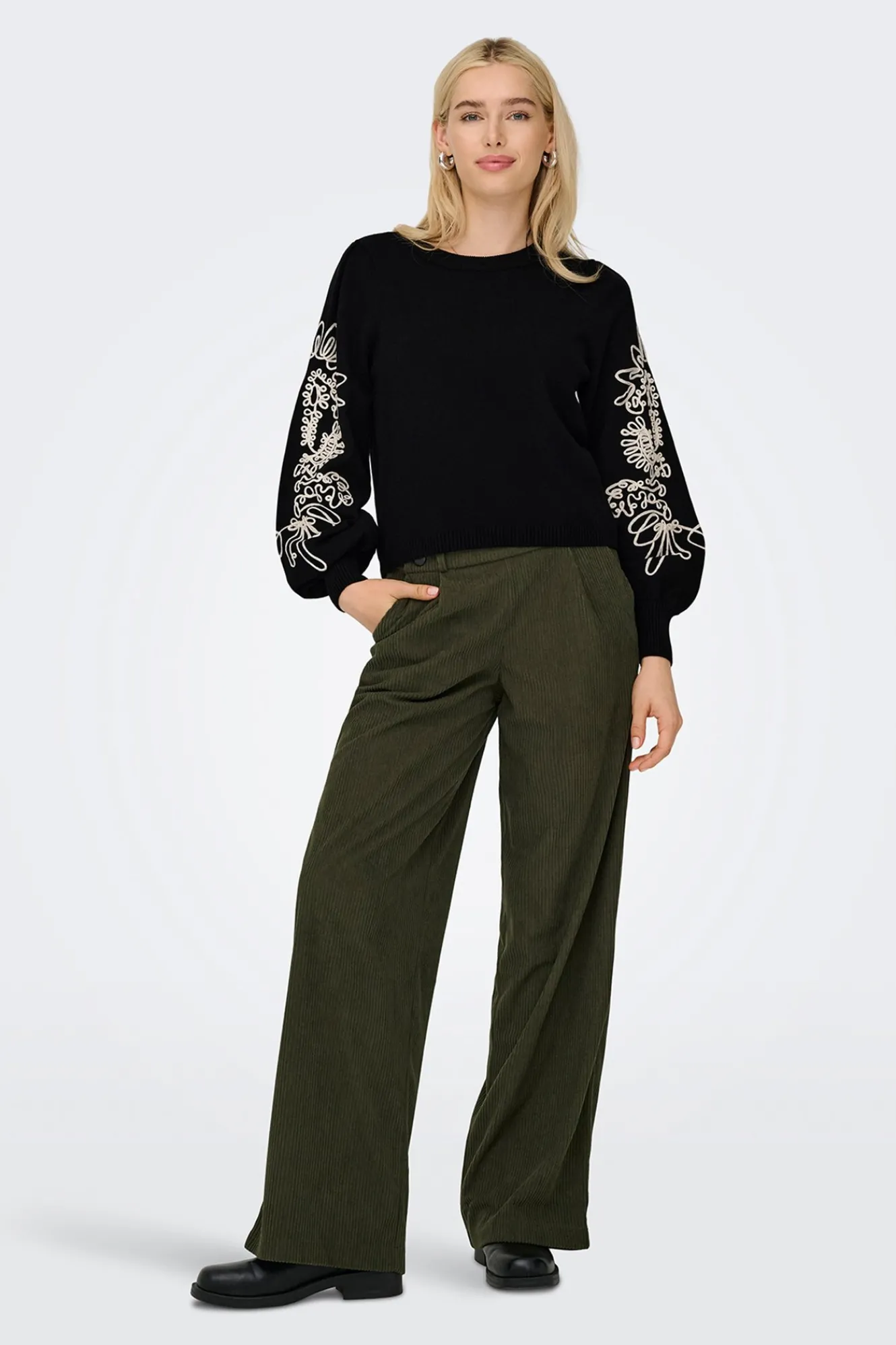– Manga larga ligeramente abullonada.
