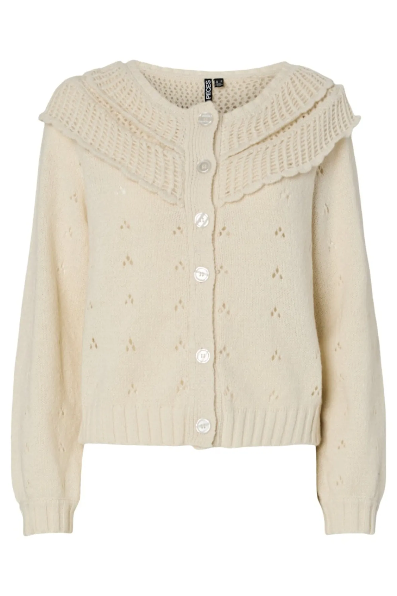 Pieces Cárdigan de punto fino con volantes y detalle calado^Mujer Jerséis Y Cárdigans