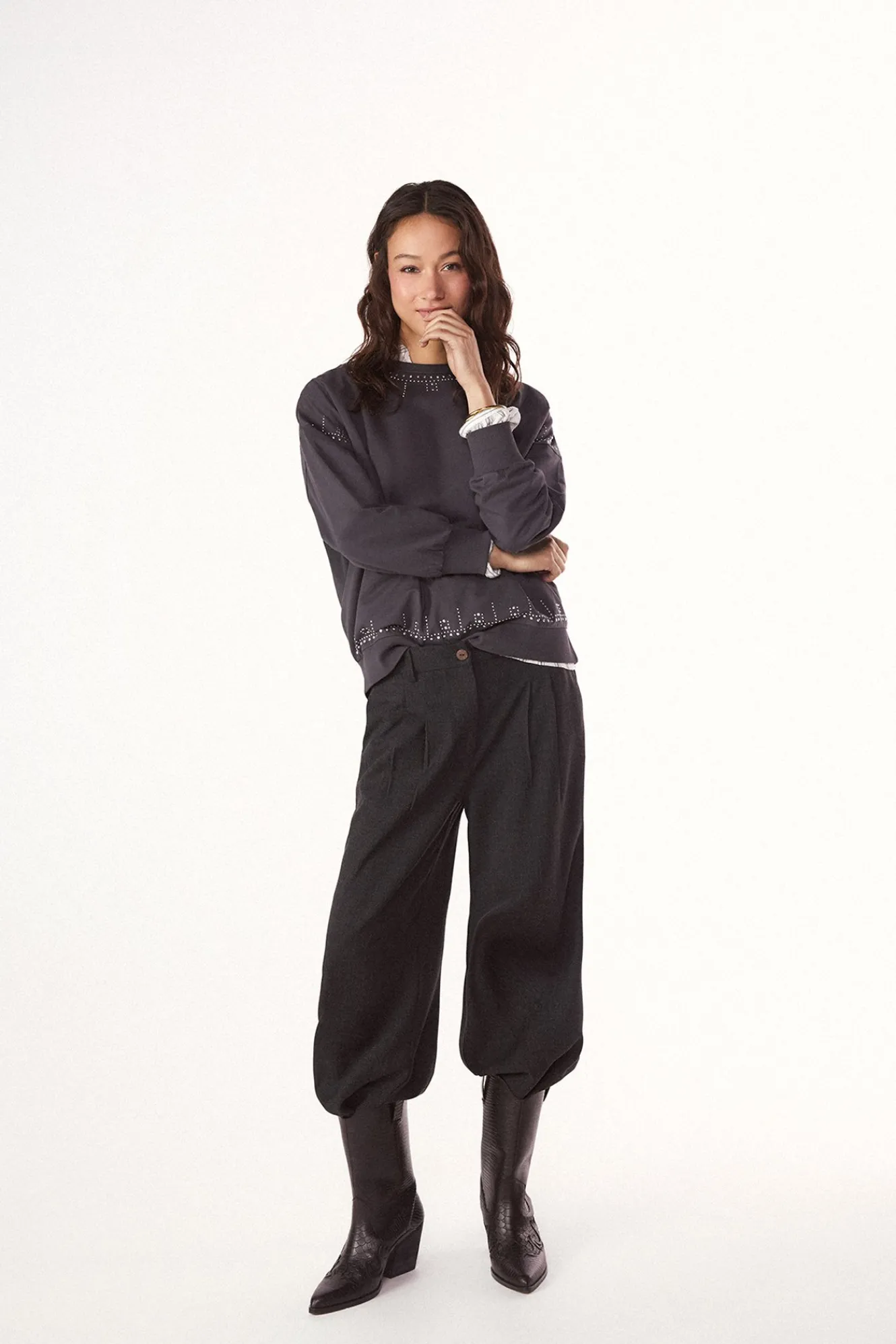 – Detalles de tachas en cuello, sisa y bajo