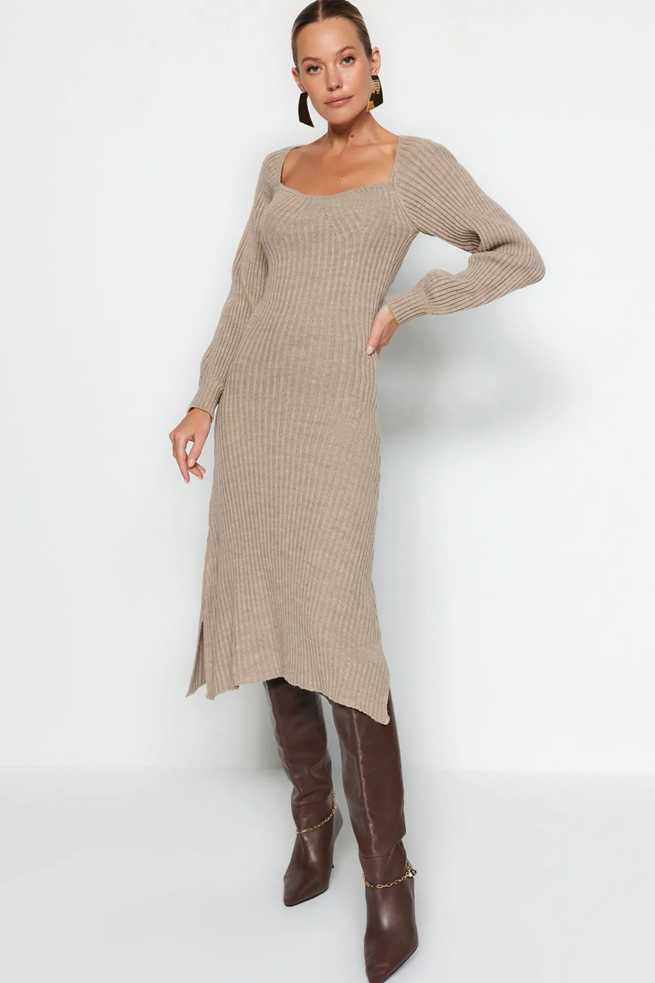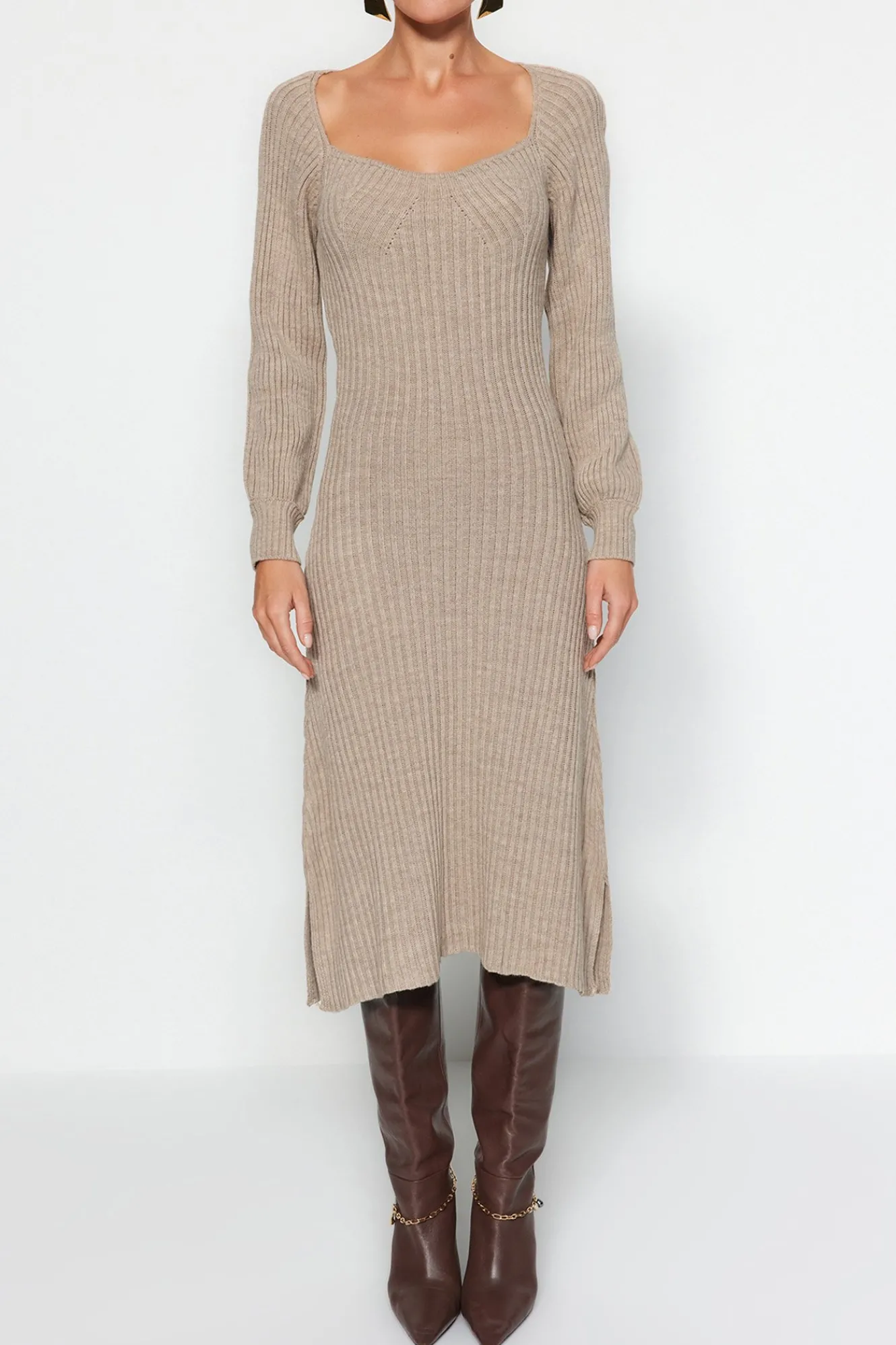 Trendyol Vestido midi con escote corazón^Mujer Basic Bar