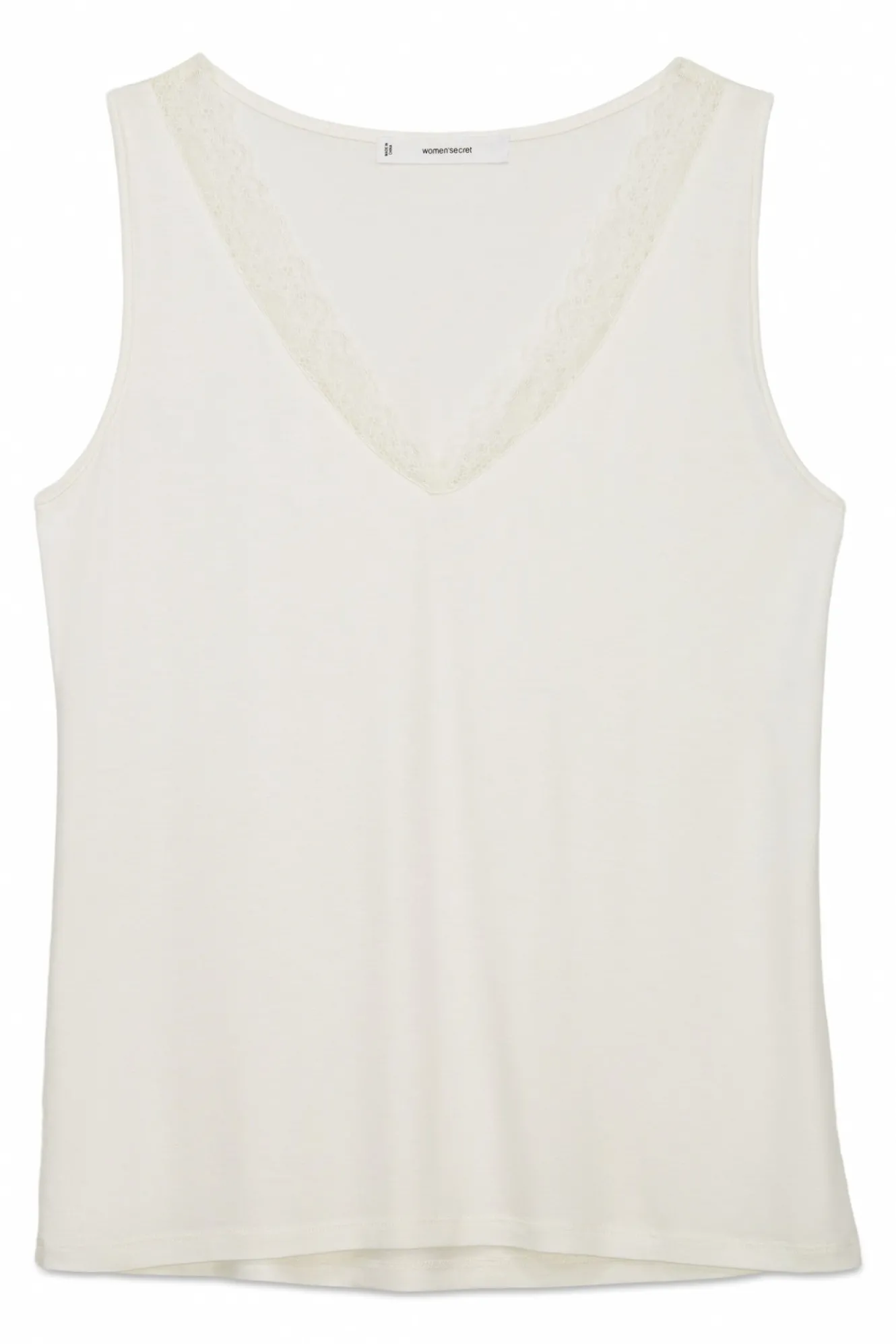 – Corte entallado y escote en pico con detalle de encaje a tono.