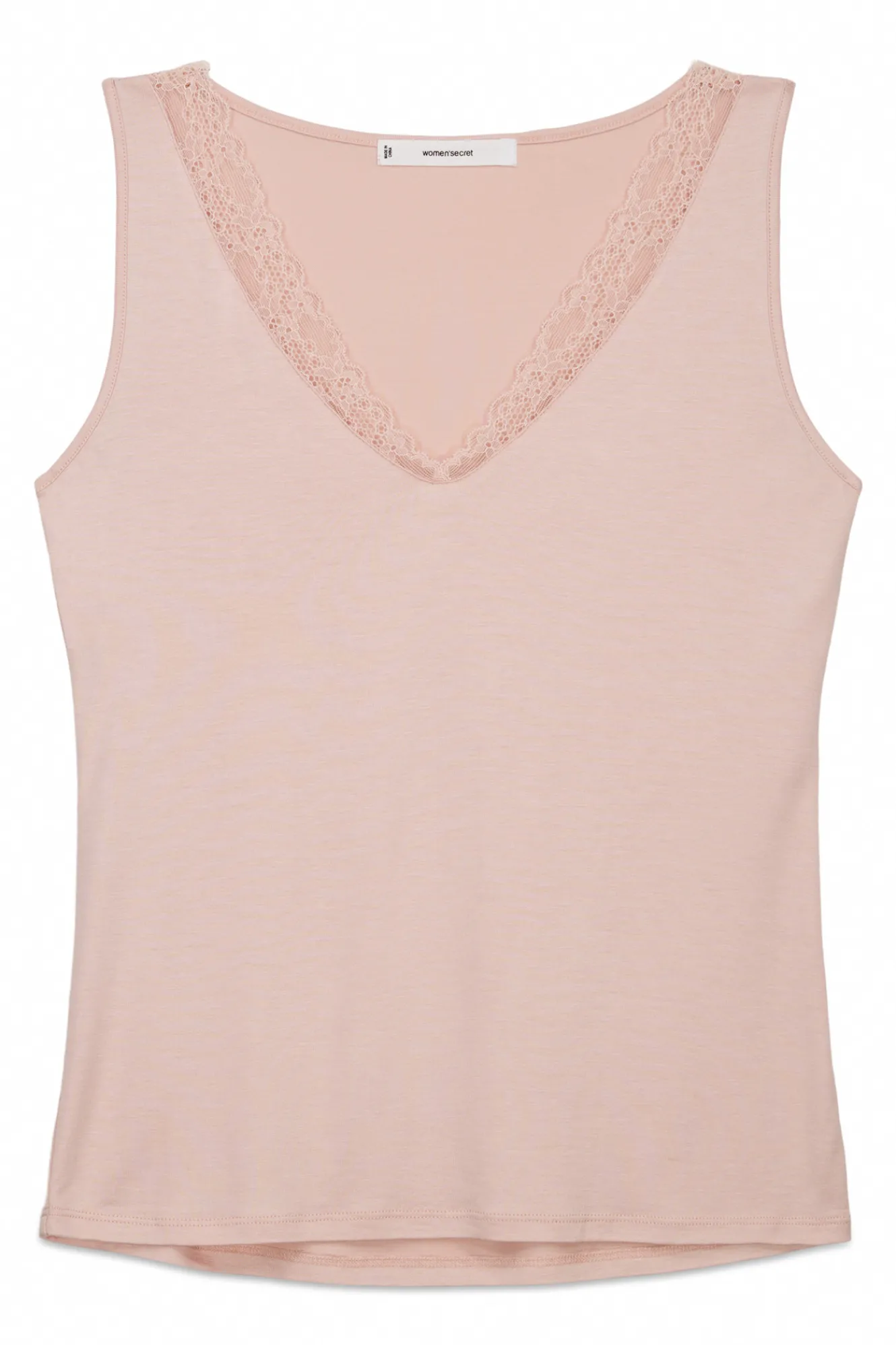 – Corte entallado y escote en pico con detalle de encaje a tono.